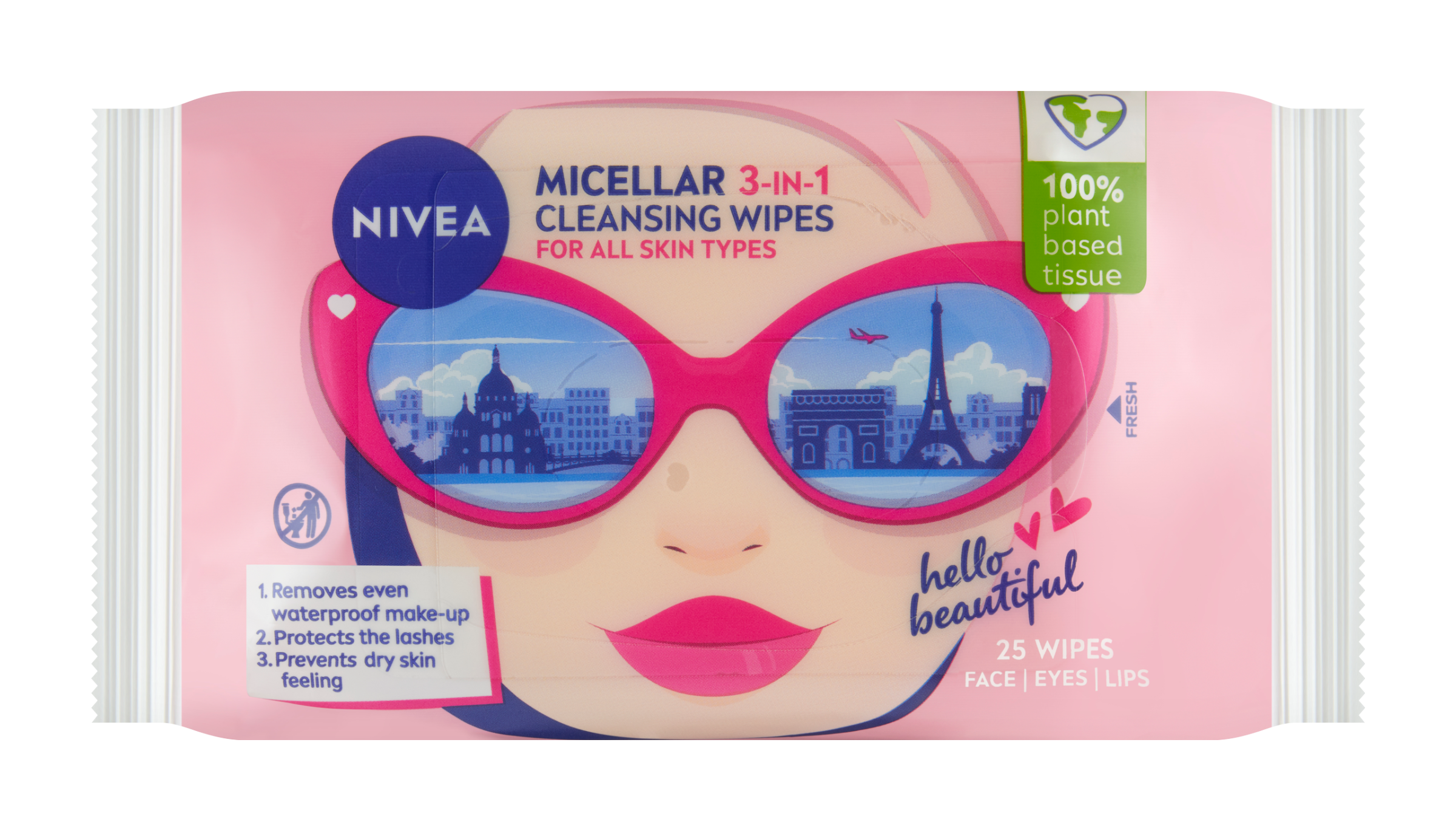 Nivea® Micelární čistící ubrousky 3v1 účinně a jemně čistí pleť a odstraňují i voděodolný make-up a řasenku. ubrousky jsou ze 100% rostlinných vláken. Složení je bez mikroplastů (dle definice UNEP).