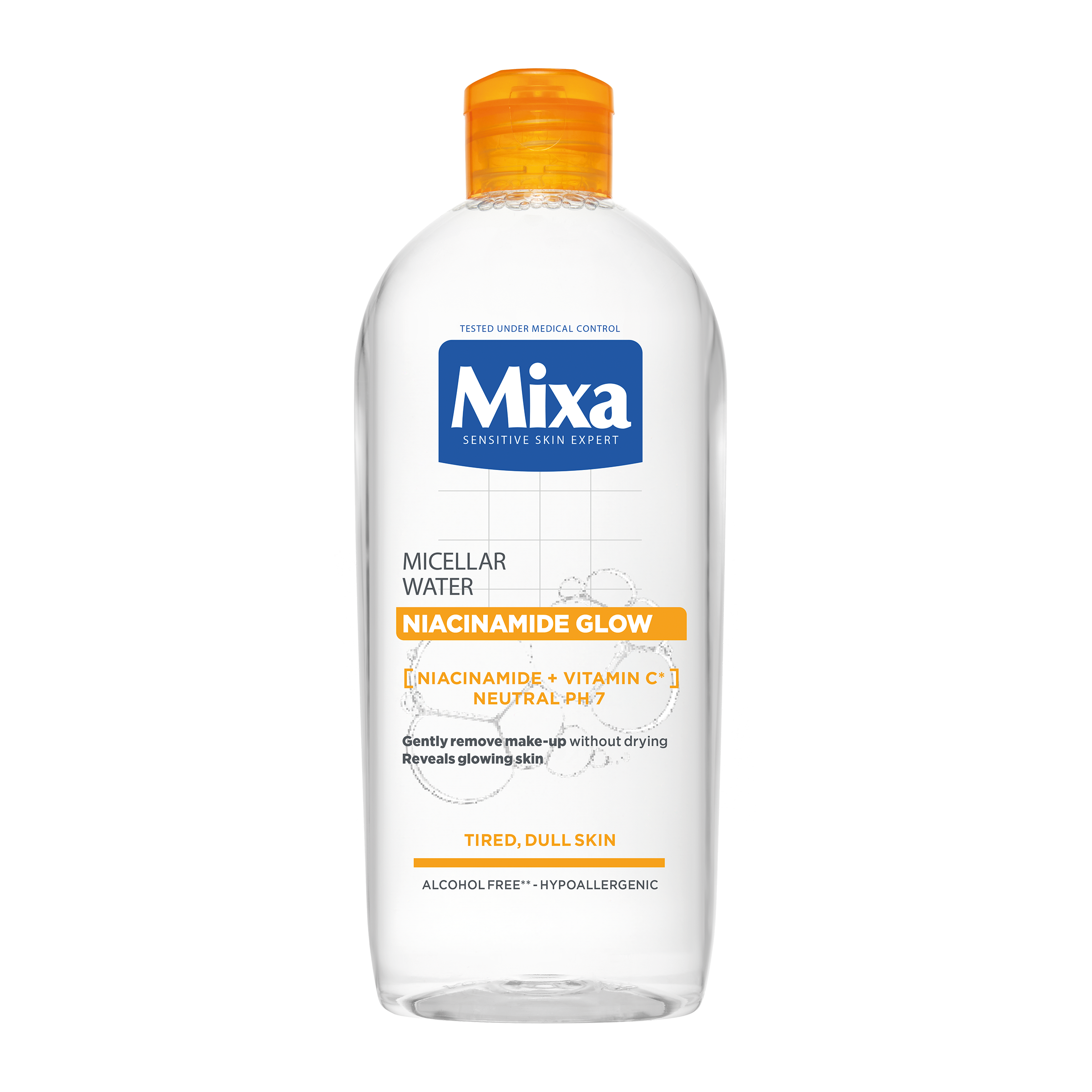 Niacinamide Glow micelární voda je ideální pro odlíčení unavené pleti bez života. Micelární voda s neutrálním pH, obohacená o niacinamid a vitamin C, ingredience známé pro své rozjasňující a sjednocující vlastnosti.