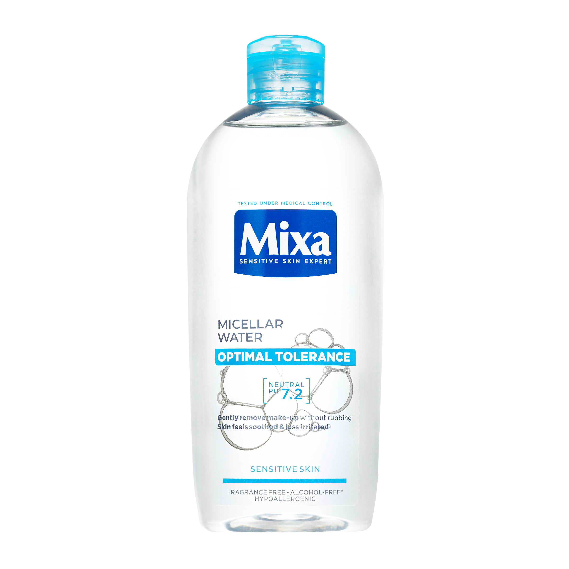 Micelární voda Mixa Optimal Tolerance je ideální pro odlíčení citlivé pleti. Obsahuje jedinečné složení s micely, které fungují na nečistoty a make-up jako magnet. Složení s neutrálním pH 7,2 jemně odstraňuje make-up z obličeje a očí jedním tahem bez zbytečného tření.
