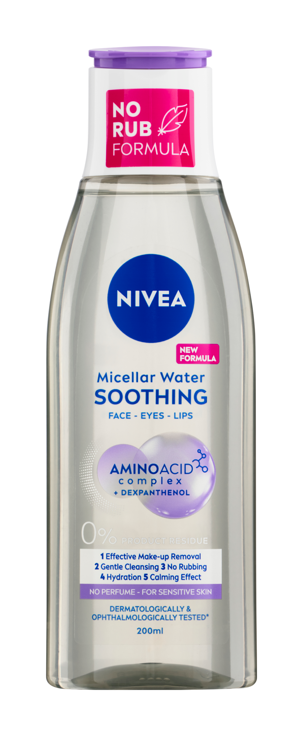 Nivea® Zklidňující micelární voda pro citlivou pleť s inovativním komplexem aminokyselin odstraňuje make-up a nečistoty bez tření!