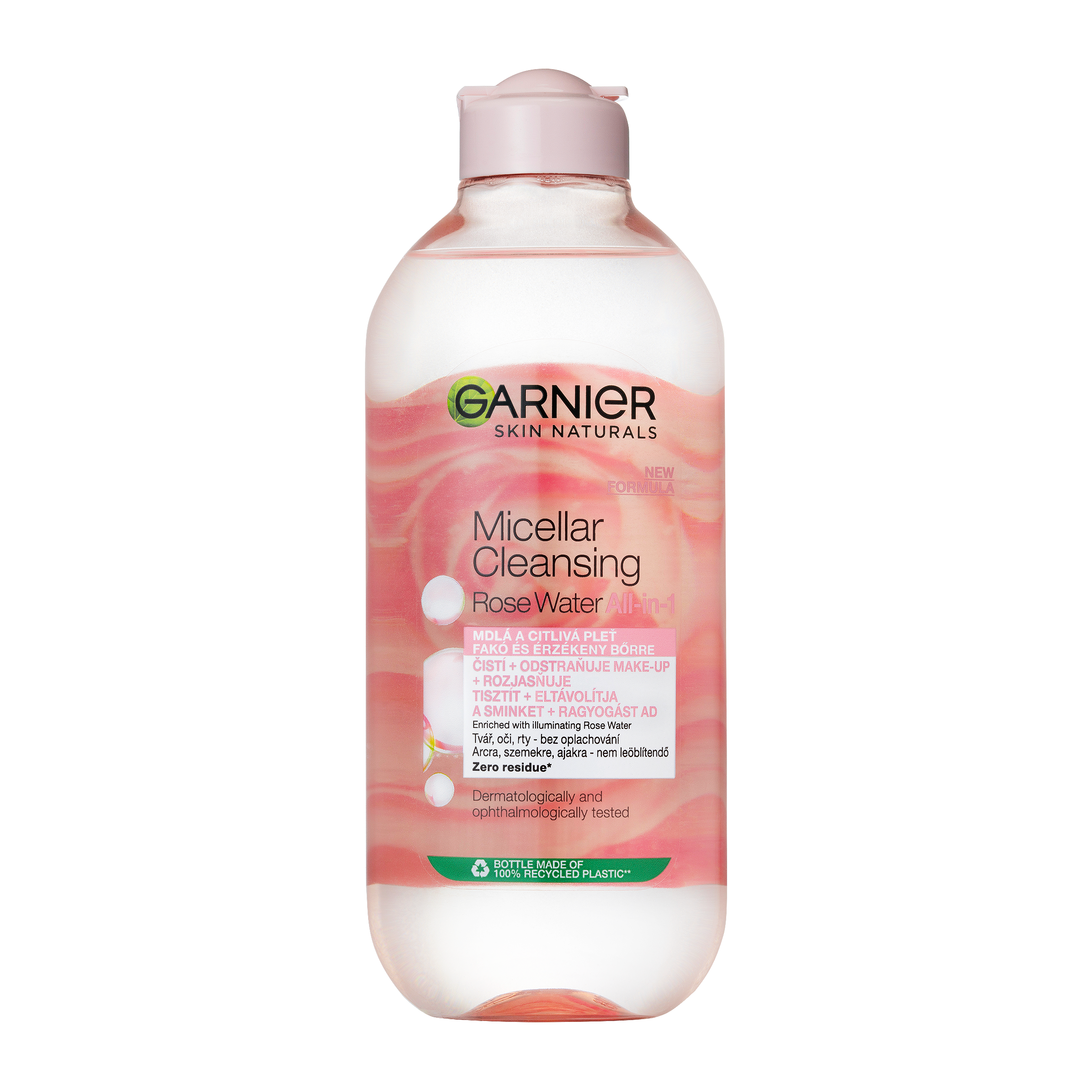 Micelární voda s růžovou vodou odstraňuje make-up, nečistoty a špínu a zároveň rozjasňuje mdlou a citlivou pleť. Toto složení je obohaceno o micely, neviditelné čisticí látky, které zachycují make-up, nečistoty a znečištění jako magnet a účinně je odstraňují bez tření. Obsahuje růžovou vodu známou svými rozjasňujícími vlastnostmi pro zvýšení jasu pleti. Díky své optimální toleranci vyhovuje toto složení všem typům pleti, včetně citlivé.