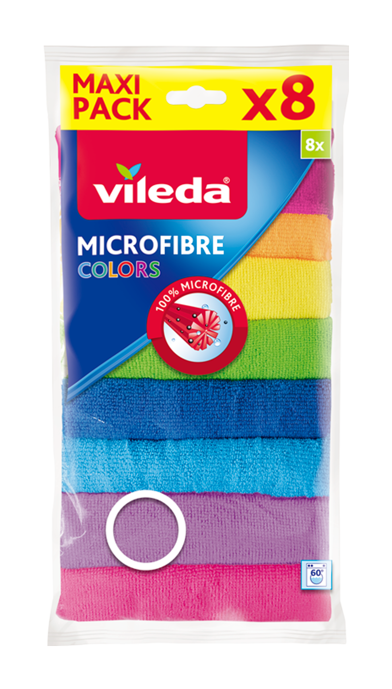 Univerzální mikrohadříky Vileda Colors představují praktického pomocníka pro každodenní úklid. Díky své jemné, ale účinné struktuře spolehlivě odstraňují více než 99 % bakterií, a to bez použití chemických prostředků. Snadno se ždímají, nezanechávají šmouhy, nepoškrábou povrchy a výborně sají. Navíc schnou až 2× rychleji než bavlna, takže zůstávají déle svěží a hygienicky čisté. S hadříky Vileda zvládnete vše – od kuchyně až po koupelnu. Ať už suché, nebo navlhčené, vždy nabídnou skvělý výsledek a dlouhou životnost. Při správné péči je můžete prát opakovaně, až na 60 °C (bez aviváže).