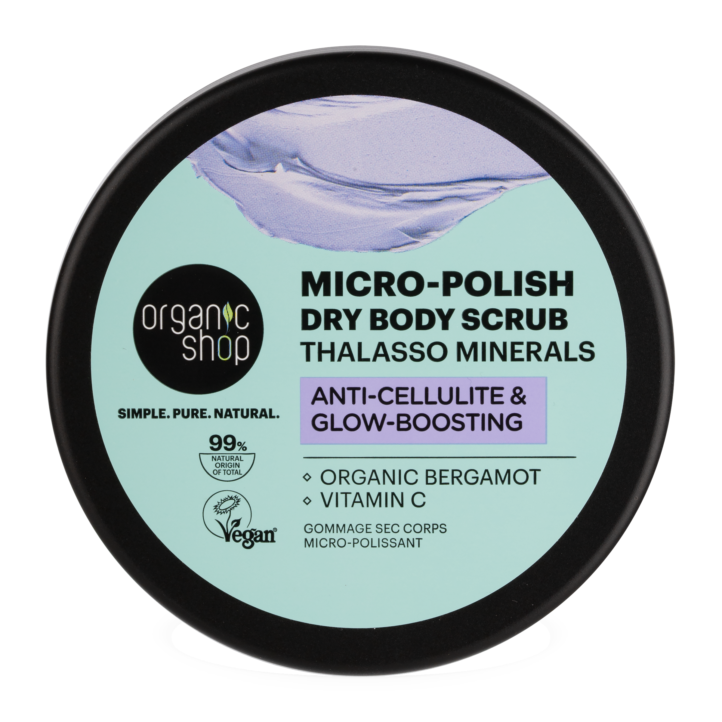 Tento suchý tělový peeling vyhlazuje a zlepšuje texturu pokožky, viditelně snižuje výskyt celulitidy v horních vrstvách kůže. Ultra jemné micro-polish částice Thalasso minerálů stimulují obnovu kožních buněk. Vitamin C rozjasňuje a dodává pokožce vitalitu, zatímco Organický bergamot napomáhá probudit její přirozenou záři.