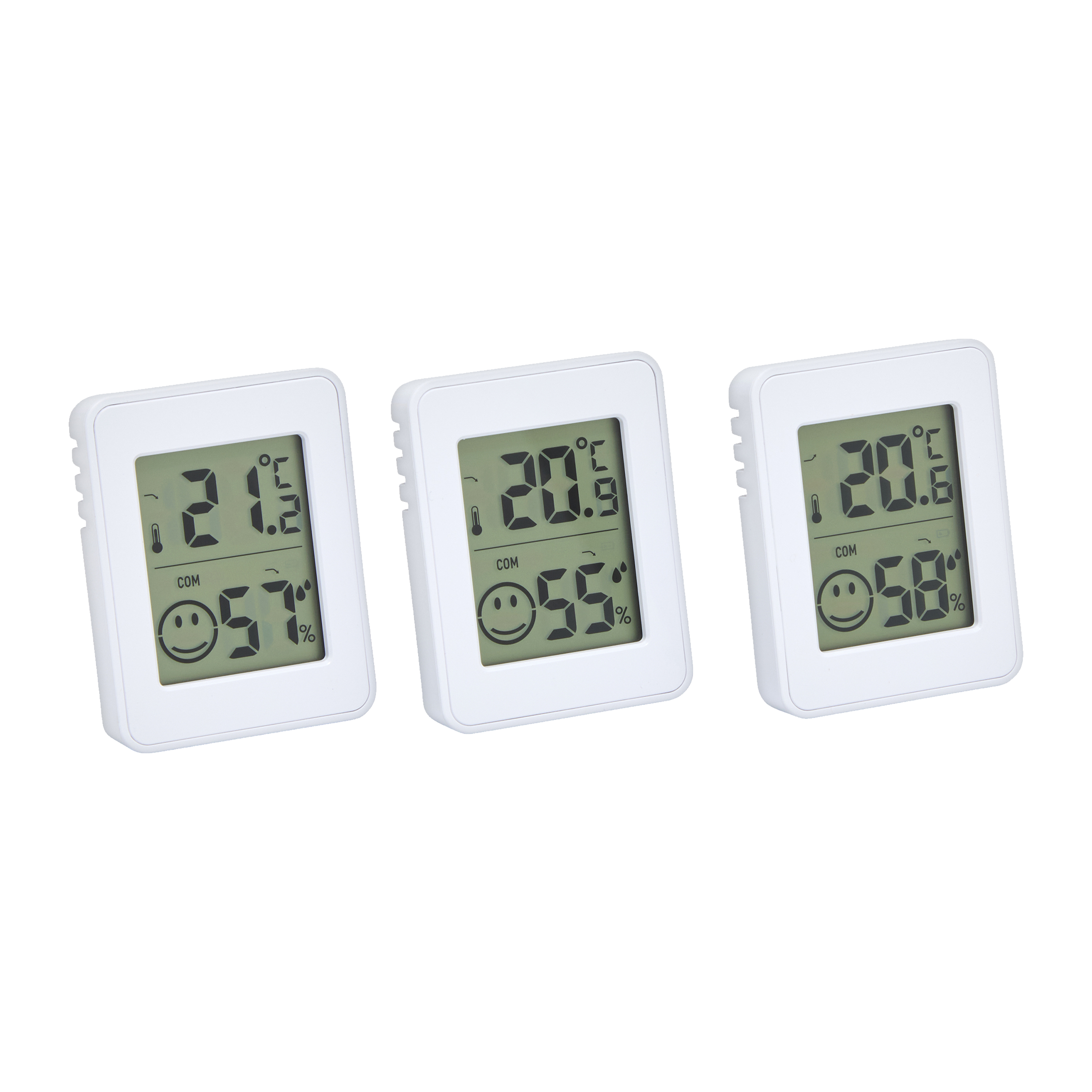 Mini digitální vlhkoměr je praktický nástroj pro měření vlhkosti vzduchu a teploty v místnosti. Tyto 3 kompaktní přístroje nabízí snadné sledování ideálního mikroklimatu ve vaší domácnosti. S indikátorem vlhkosti vzduchu ve formě smajlíka vám pomůže zajistit optimální úroveň vlhkosti, která je doporučena pro zdraví a pohodu, ideálně mezi 40–60 %. Vlhkoměr můžete umístit na stůl nebo jej připevnit na jakýkoliv kovový povrch pomocí integrovanému magnetu.