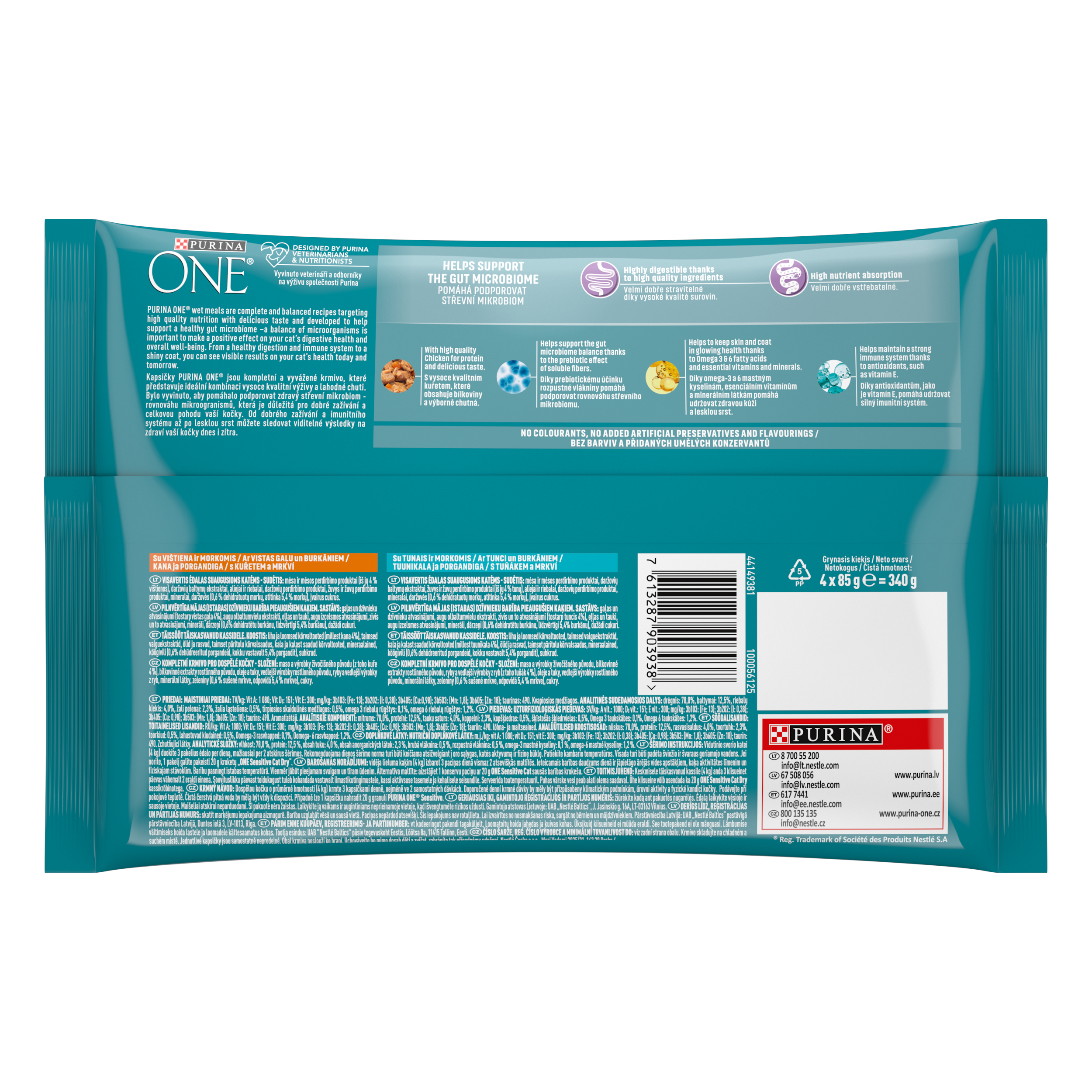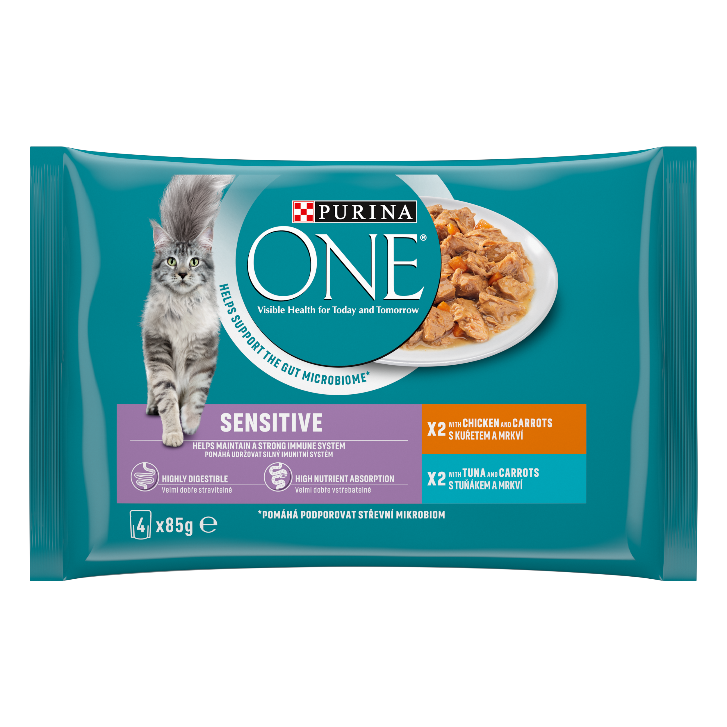 Kapsičky PURINA ONE jsou kompletní a vyvážené krmivo, které představuje ideální kombinaci vysoce kvalitní výživy a lahodné chuti. Bylo vyvinuto, aby pomáhalo podporovat zdravý střevní mikrobiom - rovnováhu mikroogranismů, která je důležitá pro dobré zažívání a celkovou pohodu vaší kočky. Od dobrého zažívání a imunitního systému až po lesklou srst můžete sledovat viditelné výsledky na zdraví vaší kočky dnes i zítra.