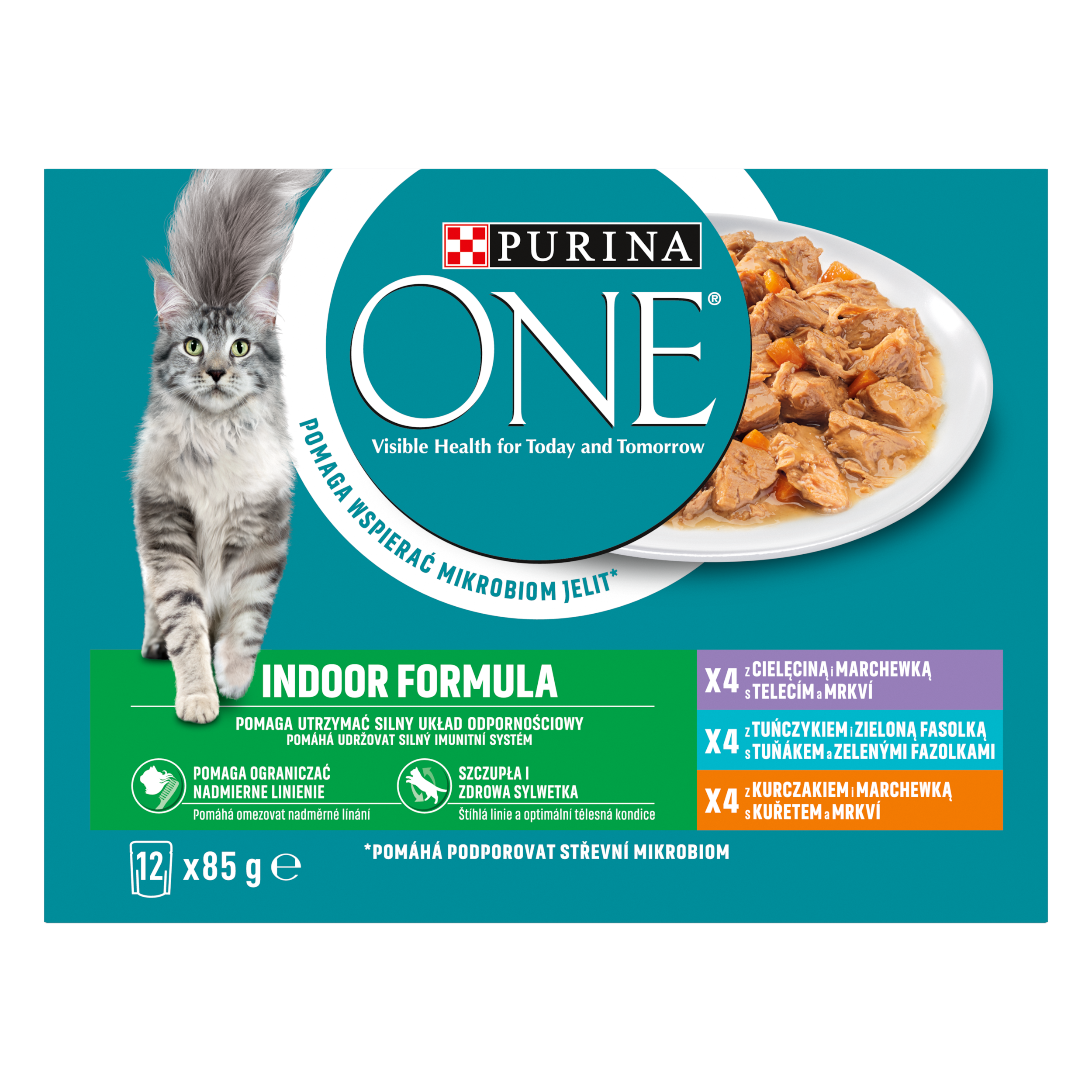 Purina ONE Indoor kapsičky pro kočky kuře, tuňák, telecí ve šťávě 12x 85 g