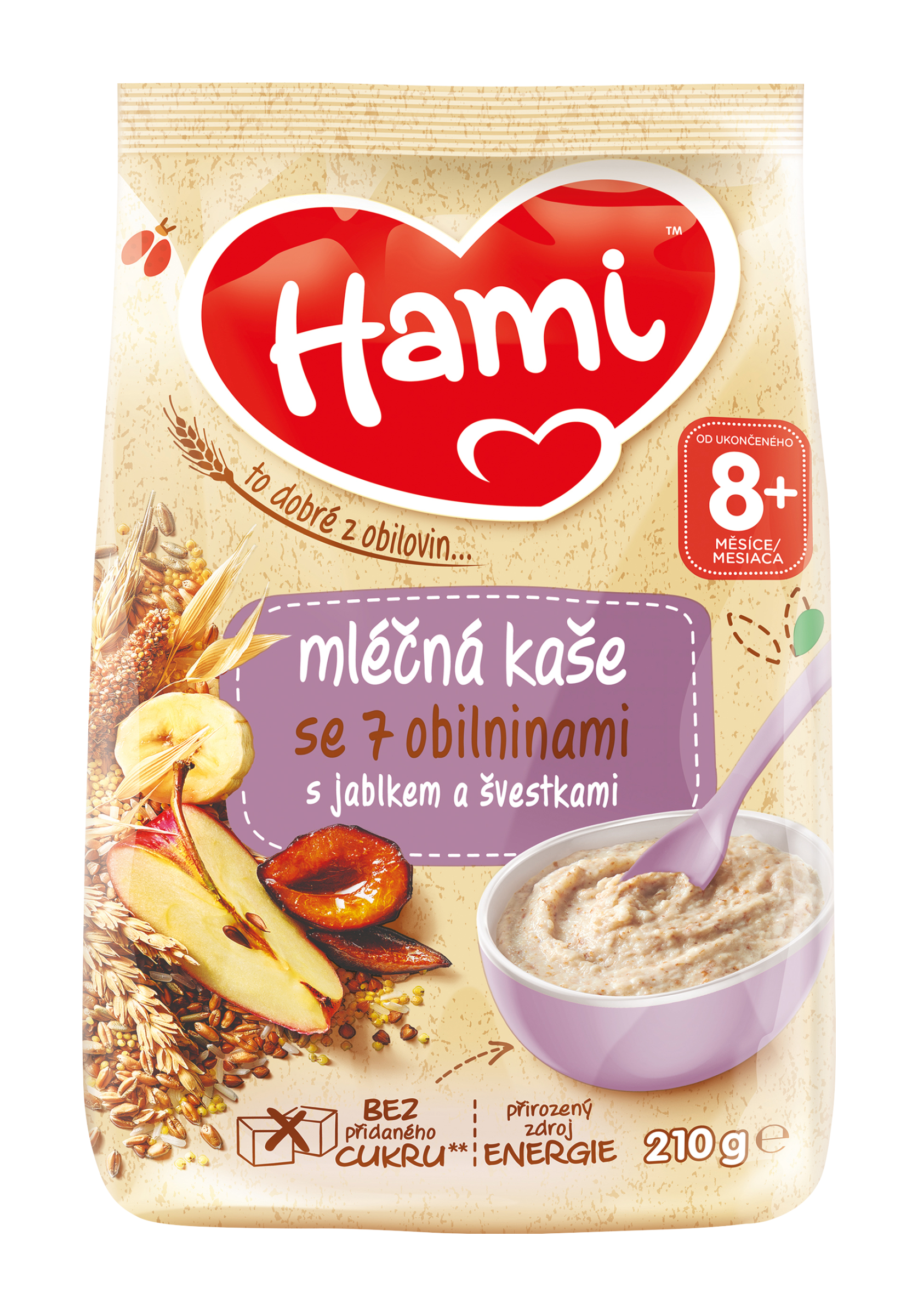 Hami mléčná kaše se 7 obilninami s jablkem a švestkami je vhodná volba pro večeři nebo snídani pro malá bříška. Každá miska kaše obsahuje potřebné živiny pro podporu imunitního systému a zdravého vývoje**. Obsahuje přirozeně se vyskytující cukry.