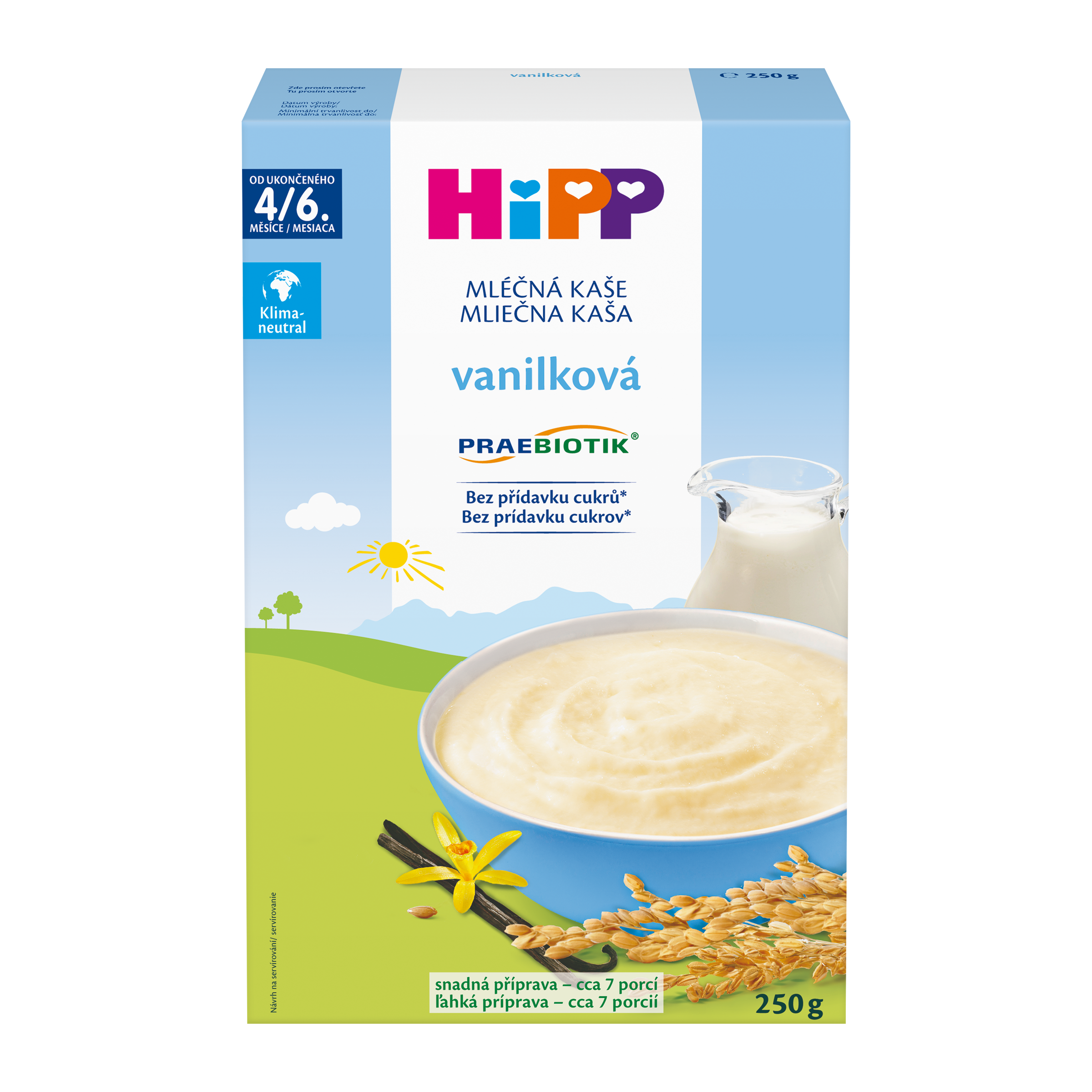 První mléčná obilná kaše PRAEBIOTIK® s extraktem z Bourbonské vanilky je ideálním jídlem v období přikrmování a pro poznávání nových chutí vašeho dítěte. Je vhodná pro kojence od ukončeného 4. měsíce jako doplněk ke kojení či k počátečnímu mléku. Má velmi jemnou strukturu a lahodnou přirozenou chuť. Kaši připravíte velmi jednoduše – smícháním s převařenou vodou určenou pro kojence.