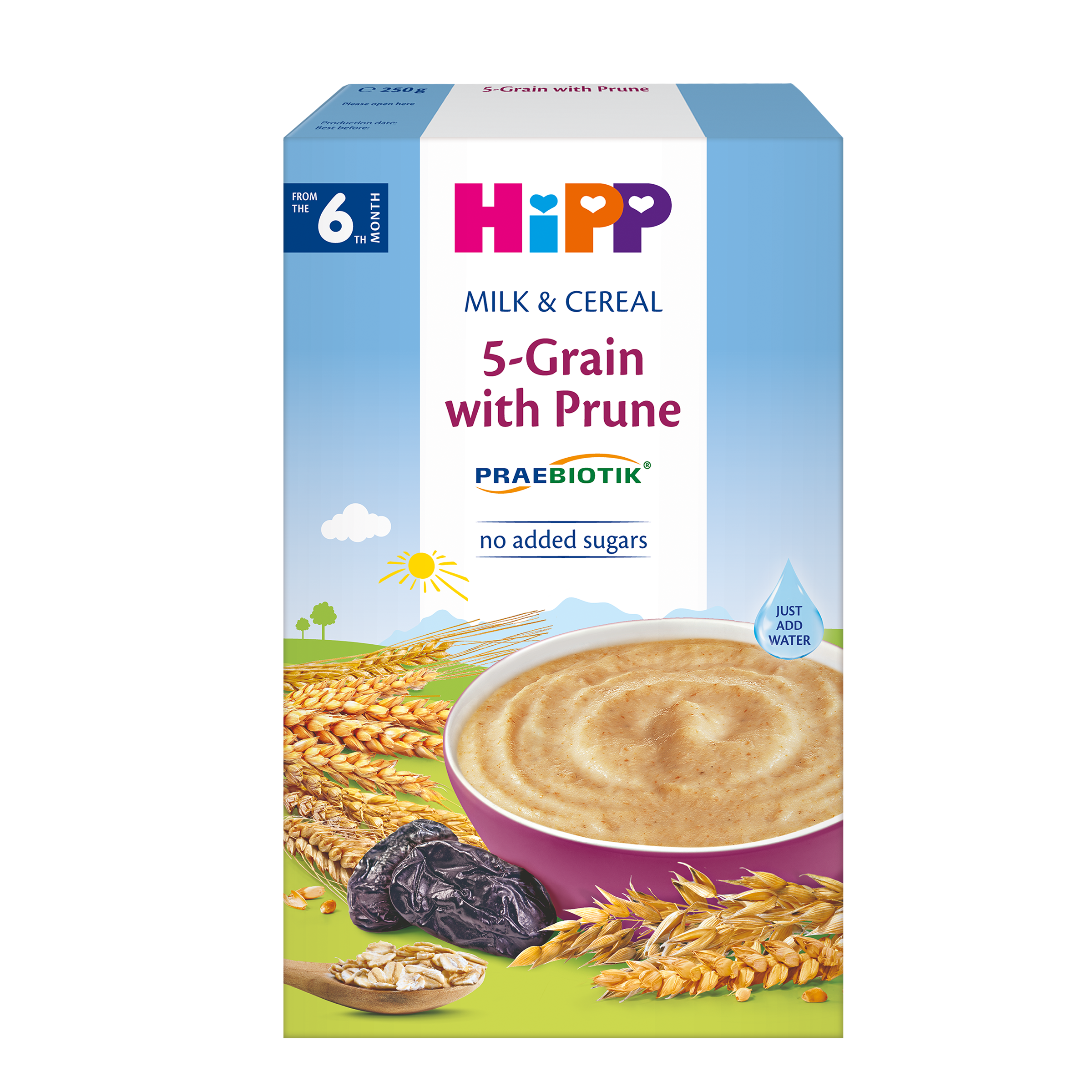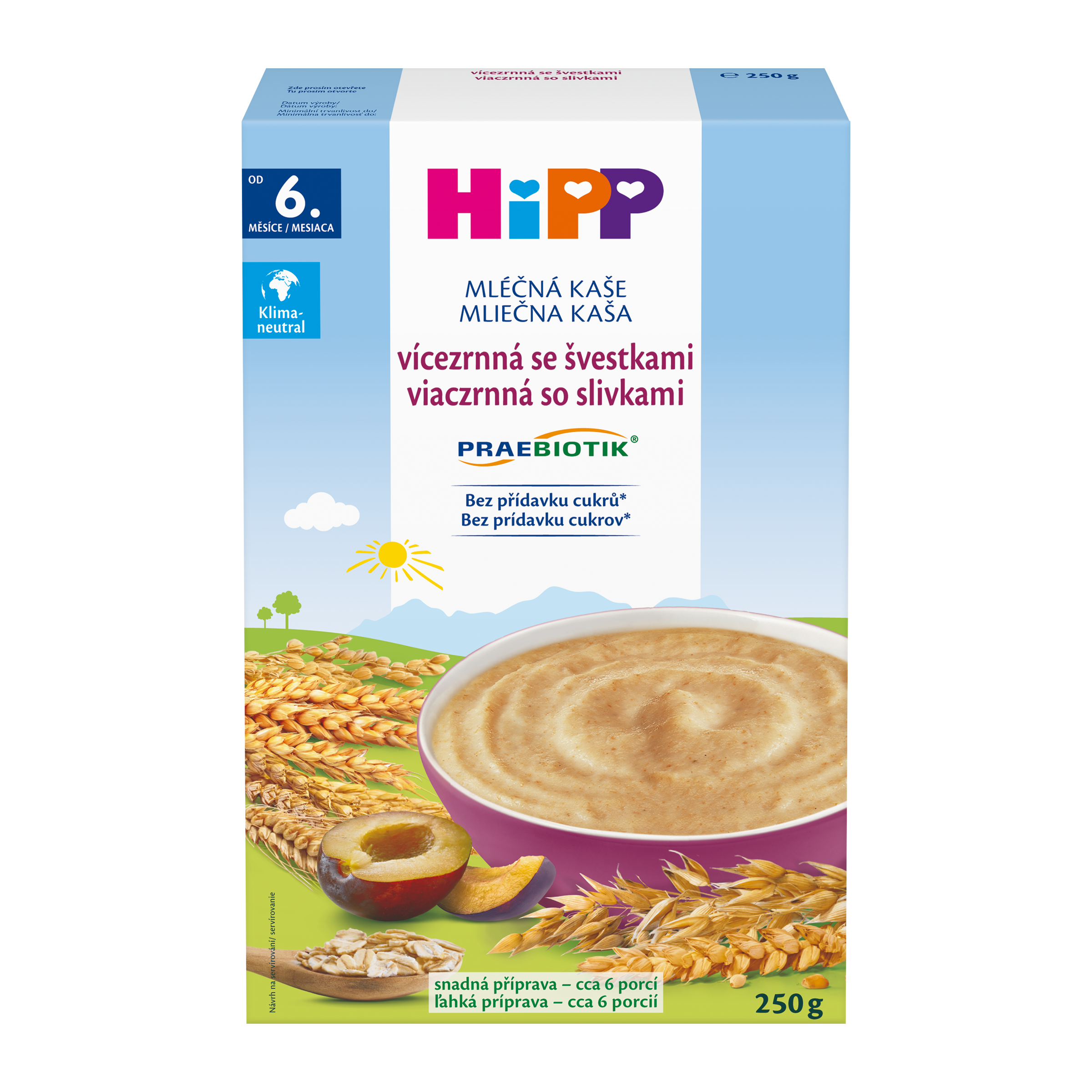 HiPP Mléčná kaše PRAEBIOTIK vícezrnná se švestkami od ukončeného 5. měsíce