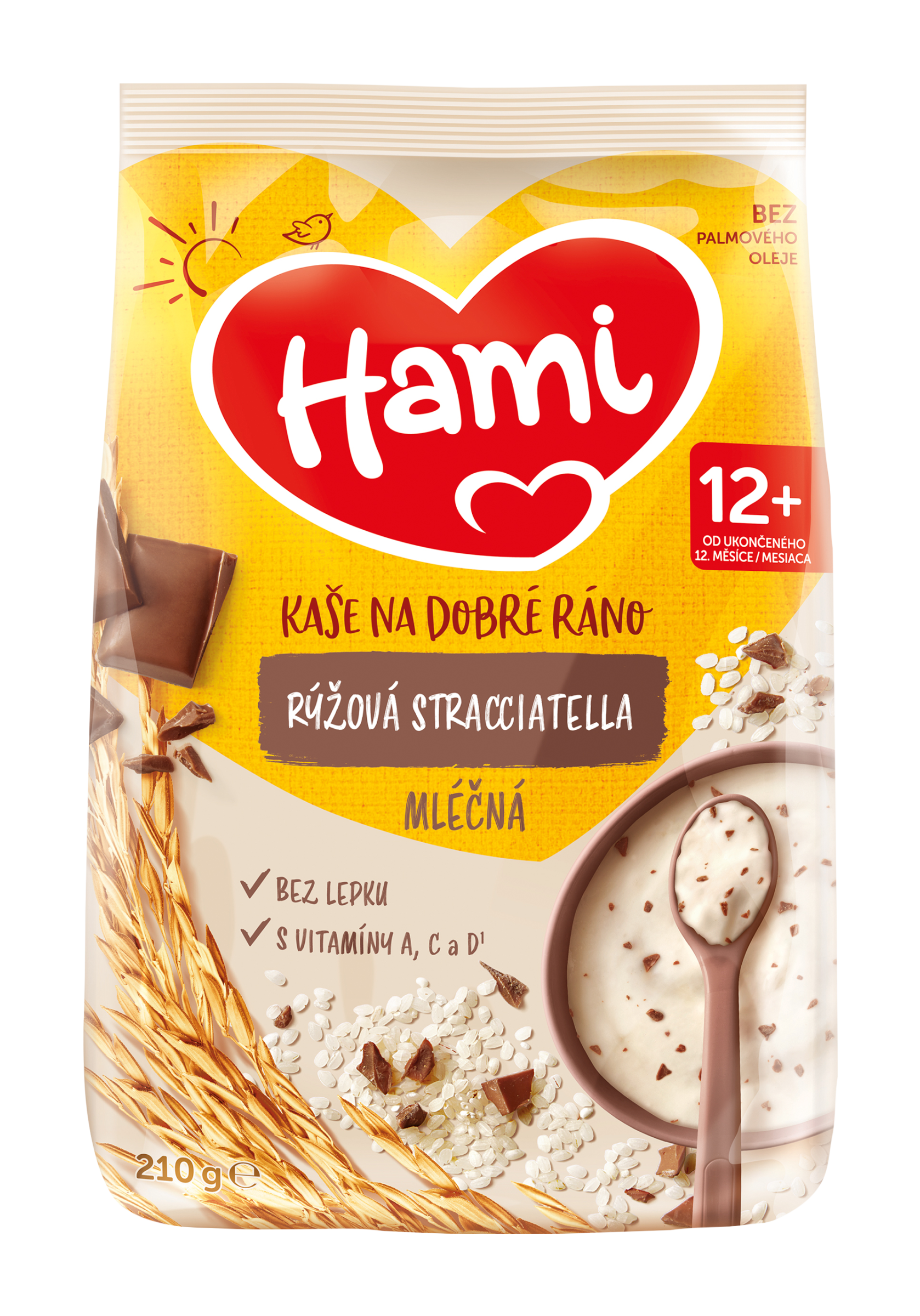 Hami mléčná kaše rýžová stracciatella je obilný příkrm určený pro malé děti od ukončeného 12. měsíce. Potravina má být pouze součástí smíšené a vyvážené stravy dítěte, není náhradou mateřského ani kojeneckého mléka. Dohlédněte na hygienu ústní dutiny v období růstu prvních zoubků, především před spaním.