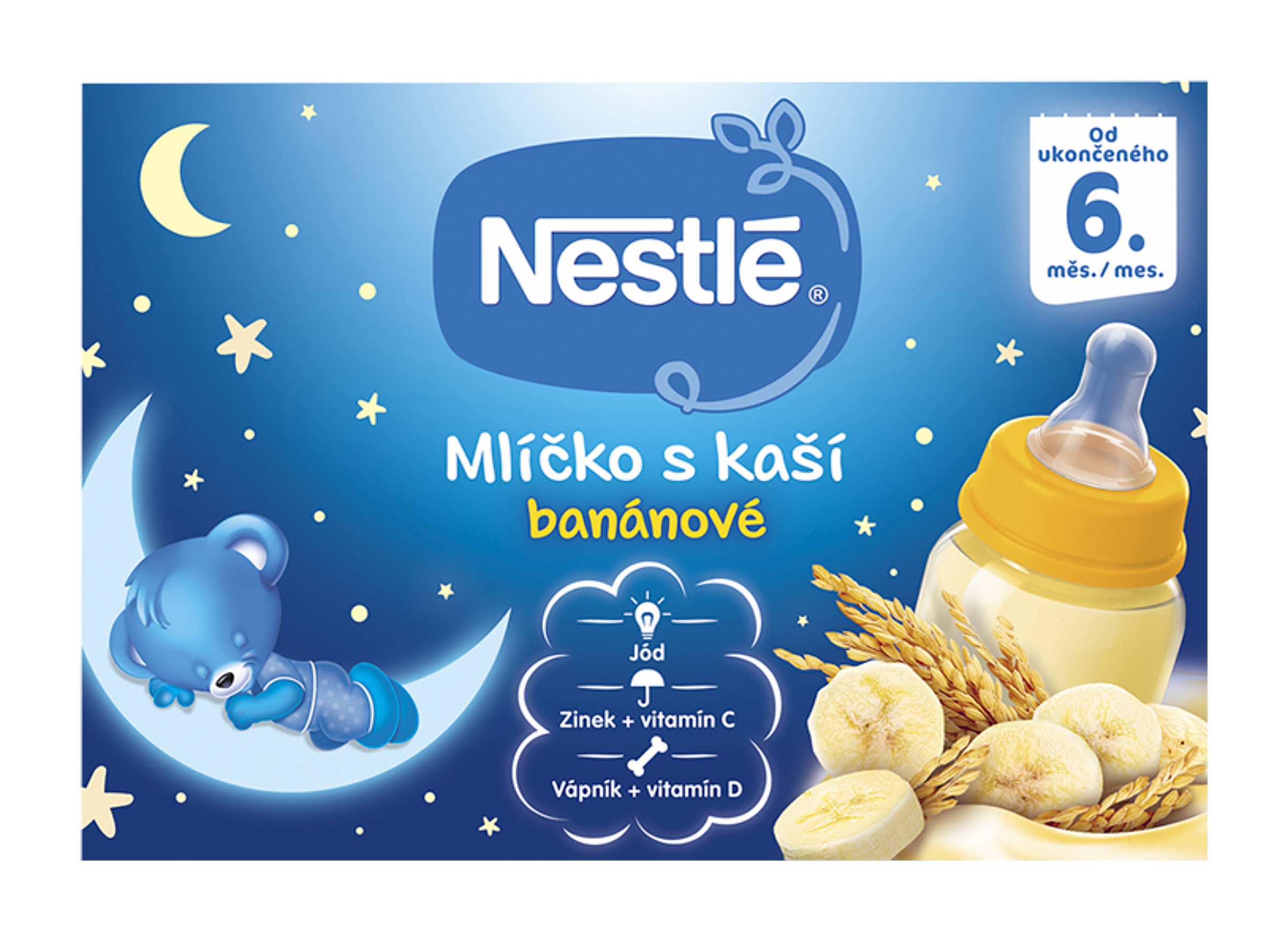 NESTLÉ Mlíčko s kaší banánové je hotový příkrm pro kojence od ukončeného 6. měsíce, který uspokojí i ta nejnáročnější bříška našich nejmenších. Je připraveno z kvalitního mléka a zahuštěné oblíbenou kaší. Mlíčko s kaší je takto připravené k okamžitému krmení, stačí odstřihnout roh a nalít do lahvičky, případně ohřát a můžete podávat.