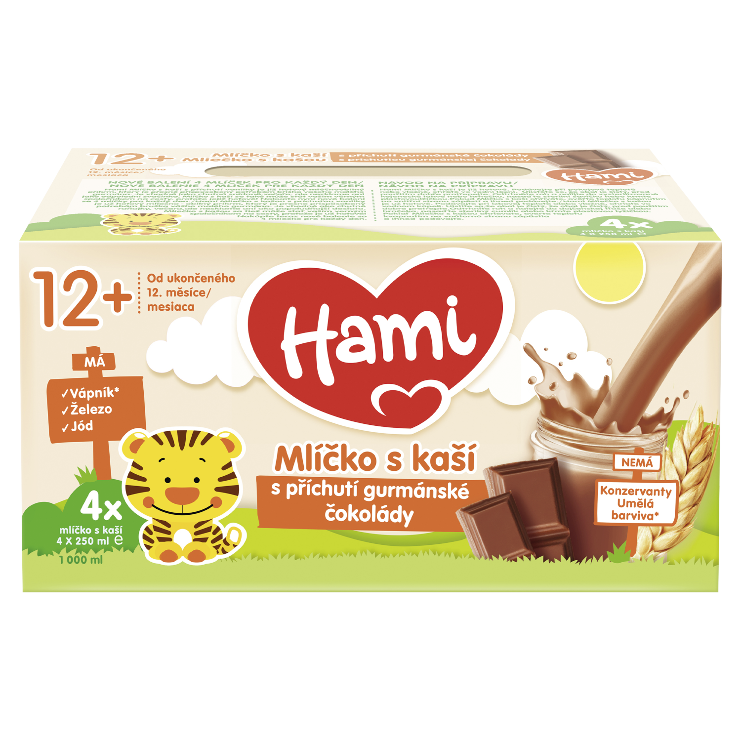 Hami mlíčko s kaší obsahuje 90 % kojeneckého mléka s vitamíny a 10 % kojenecké kašičky, pečlivě vybrané a kontrolované obilniny, vitamín D a vápník pro normální růst a vývoj kostí.