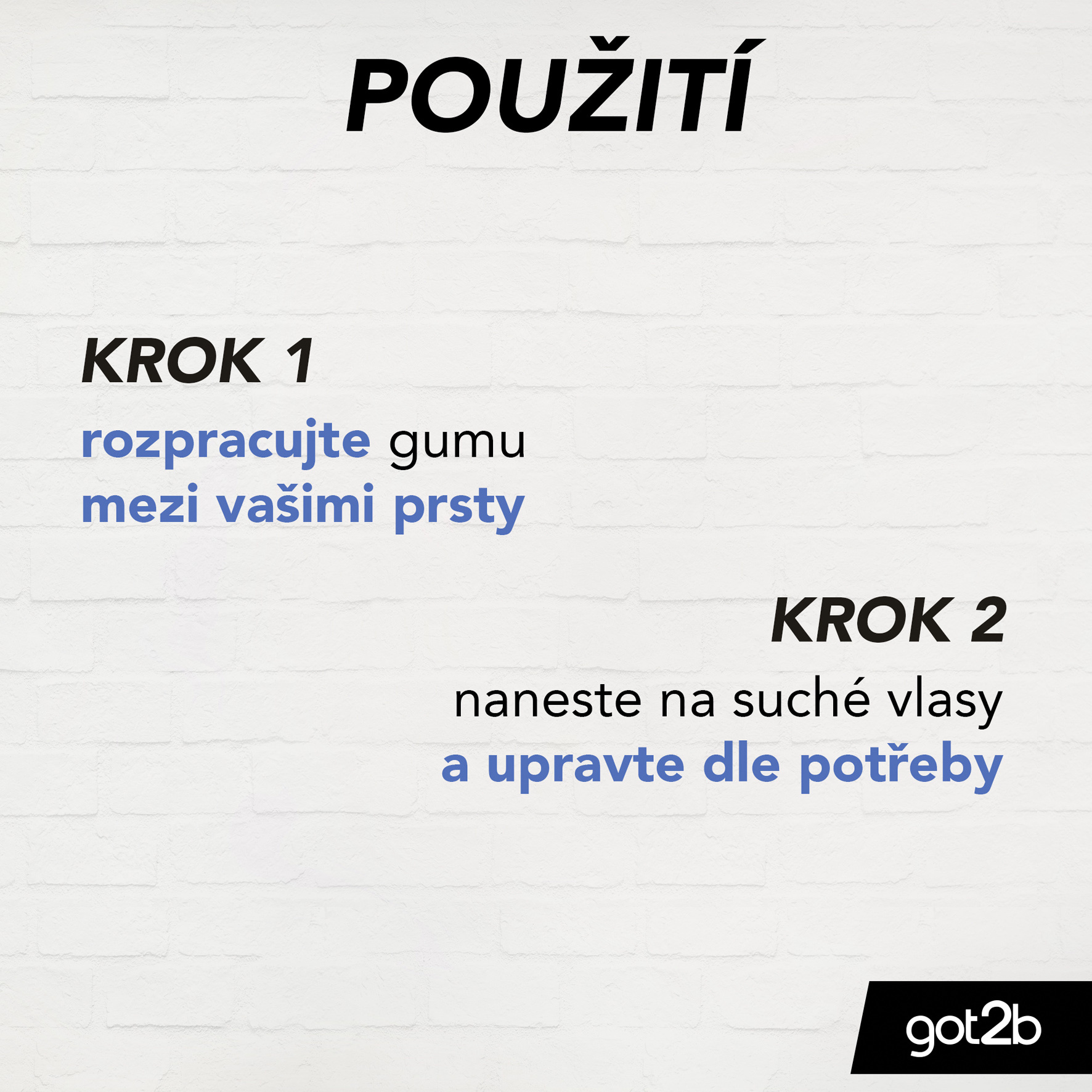 - Tip: Převezměte kontrolu nad nepoddajnými vlasy a použijte tuto gumu got2b na suché vlasy a tvořte a upravujte. Ideální pro krátké i dlouhé vlasy.
