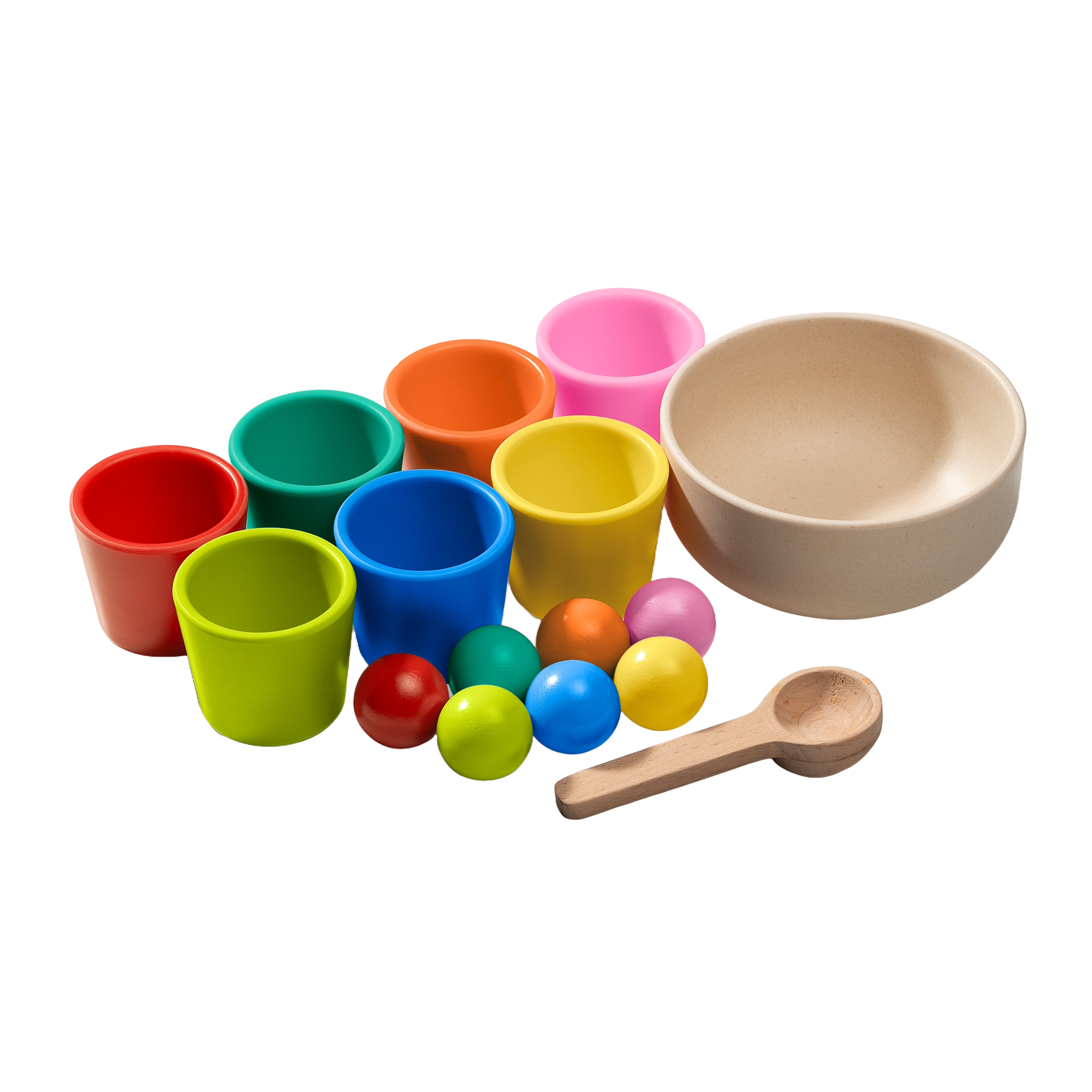 - Sada obsahuje 7 kuliček, třídicí kelímky, misku, 1 lžíci a praktický úložný sáček pro snadné přenášení