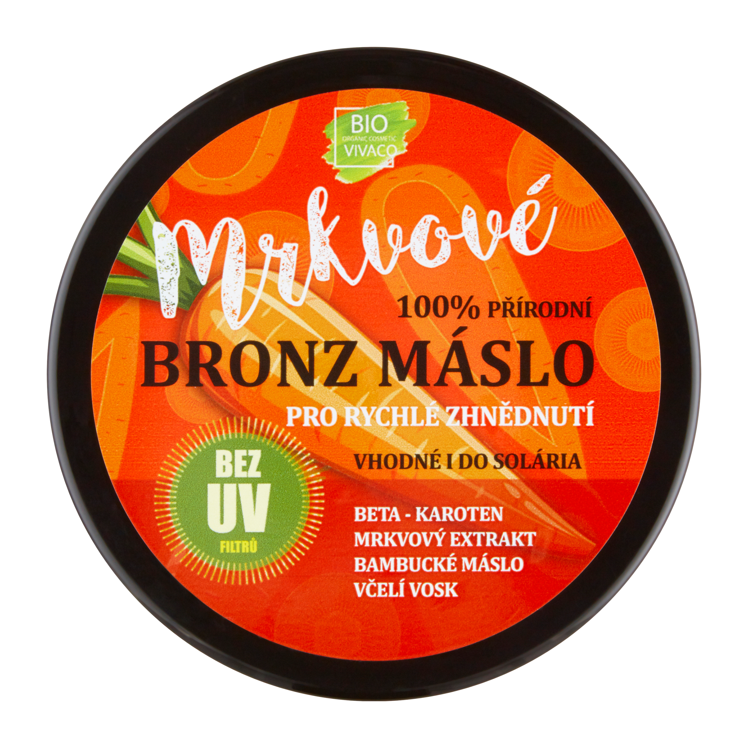Mrkvové bronz máslo pro rychlé zhnědnutí bez UV filtrů