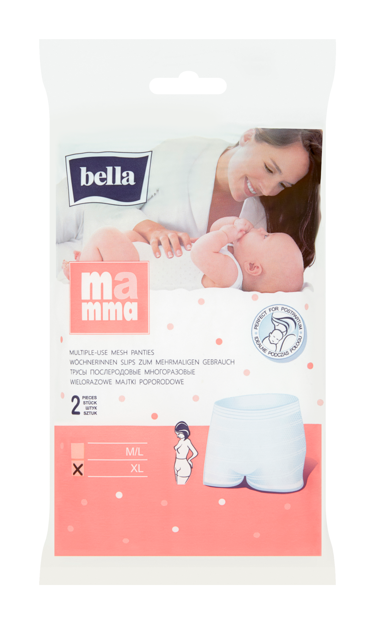 Multifunkční síťové kalhotky Bella Mamma. Vyrobeny z síťoviny, zajišťující cirkulaci vzduchu. Jemné fixační kalhotky se širokými lemy výrazně zvyšují uživatelský komfort, neškrtí a nezařezávají se. Mají boční švy na vnější straně, čímž chrání pokožku před vznikem podráždění. Výborně se přizpůsobí tvaru těla.