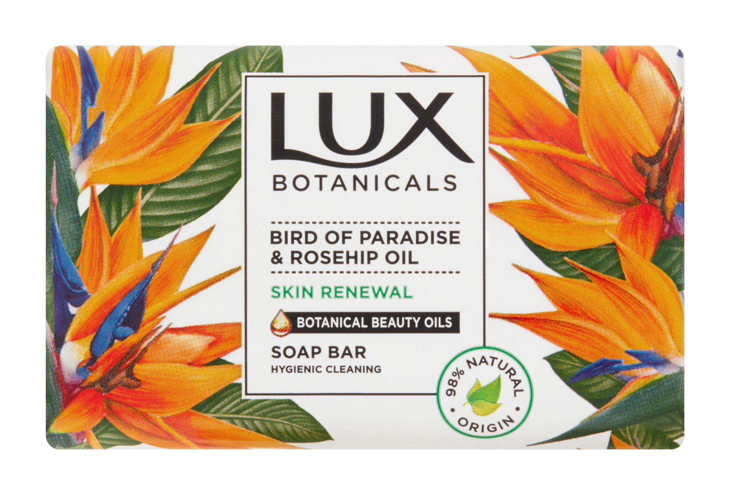 Do exotického ráje tropických ostrovů vás přenese vůně tuhého mýdla Lux Botanicals Skin Renewal Bird of Paradise & Roseship Oil. Šípkový olej dodáva pokožce krásu a svěžest a jemná květinová vůně vás bude doprovázet ještě dlouho po vašem sprchovém rituálu nebo umytí rukou.
