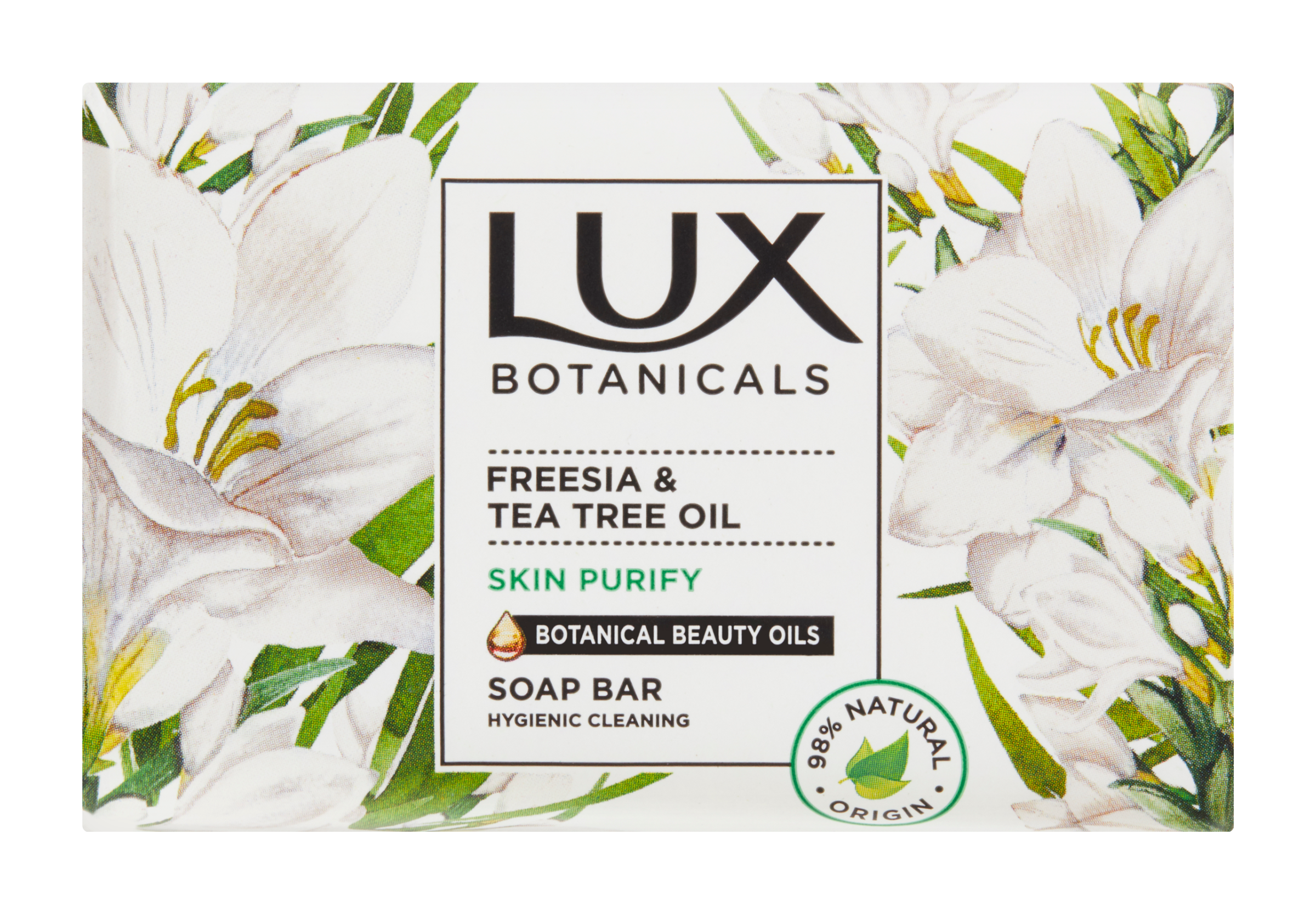Lux Frézia & Tea Tree sprchovací tableta pro důkladnou očistu pro pokožku bez stresu. Ponořte se do klidné ranní zahrady, kde je vzduch nabitý jiskřivou vůní exotických frézií a čajovníku.