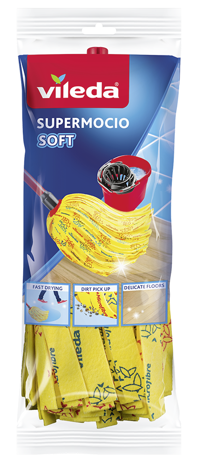 Vileda SuperMocio Soft náhrada k třásňovému mopu je oblíbená pro svá tenká mikrovlákna. Ta zachytí i ty nejjemnější prachové částice a pomohou vám vytřít ještě rychleji.