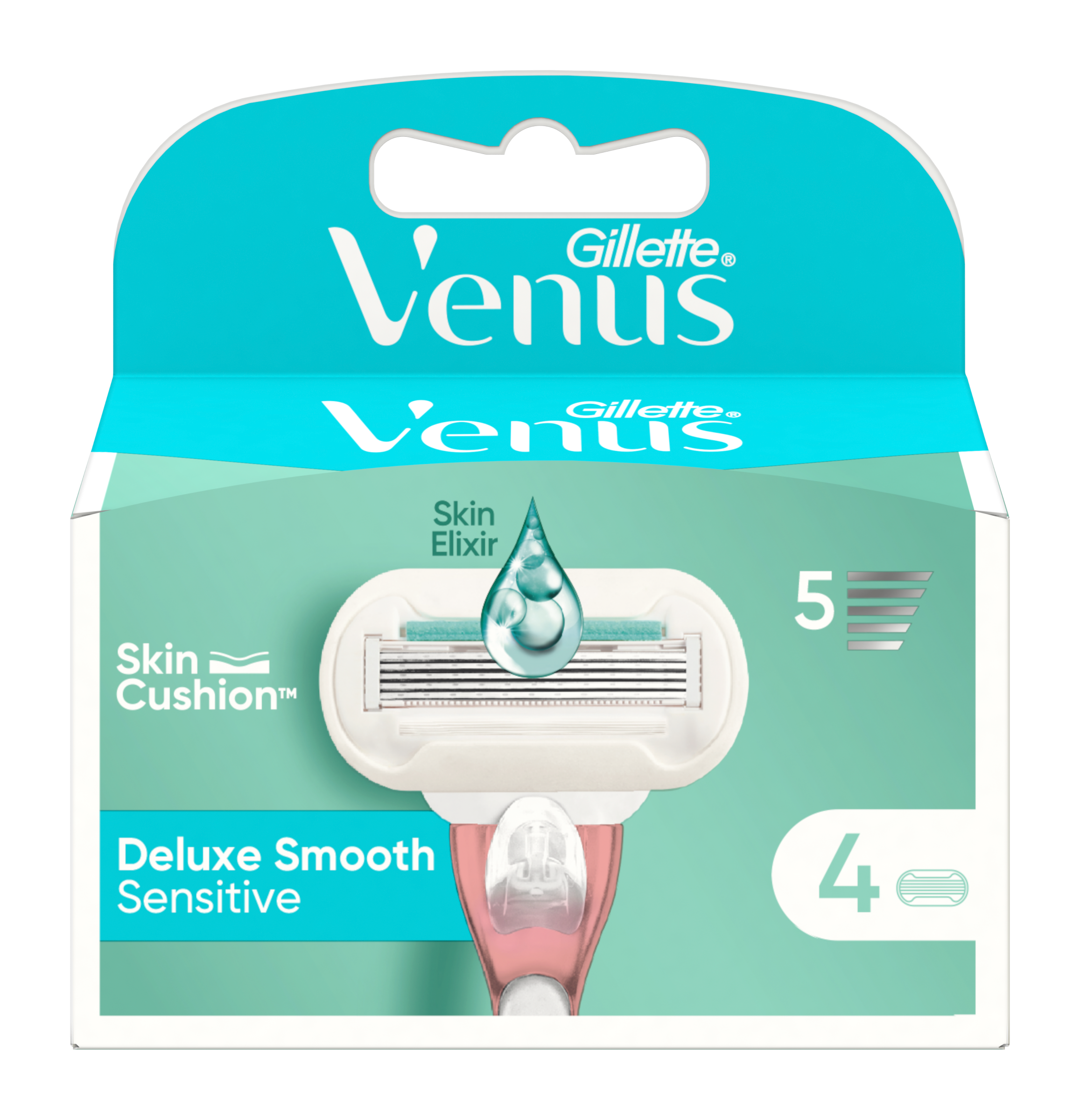 Břity dámských holicích strojků Venus jsou navrženy s ohledem na ženské tělo. Dámské holicí strojky Venus Deluxe Smooth Sensitive jsou ideální pro ochranu citlivé pokožky. Holicí hlavice mají 5 břitů, které zajišťují dlouhotrvající hladké oholení, a zvlhčující pásek SkinElixir uvolňující tu správnou dávku ochrany, kterou na pokožce samy ucítíte. Všechny náhradní holicí hlavice Venus lze používat se všemi rukojeťmi holicího strojku Venus (s výjimkou Simply Venus a Venus pro úpravu linie bikin).