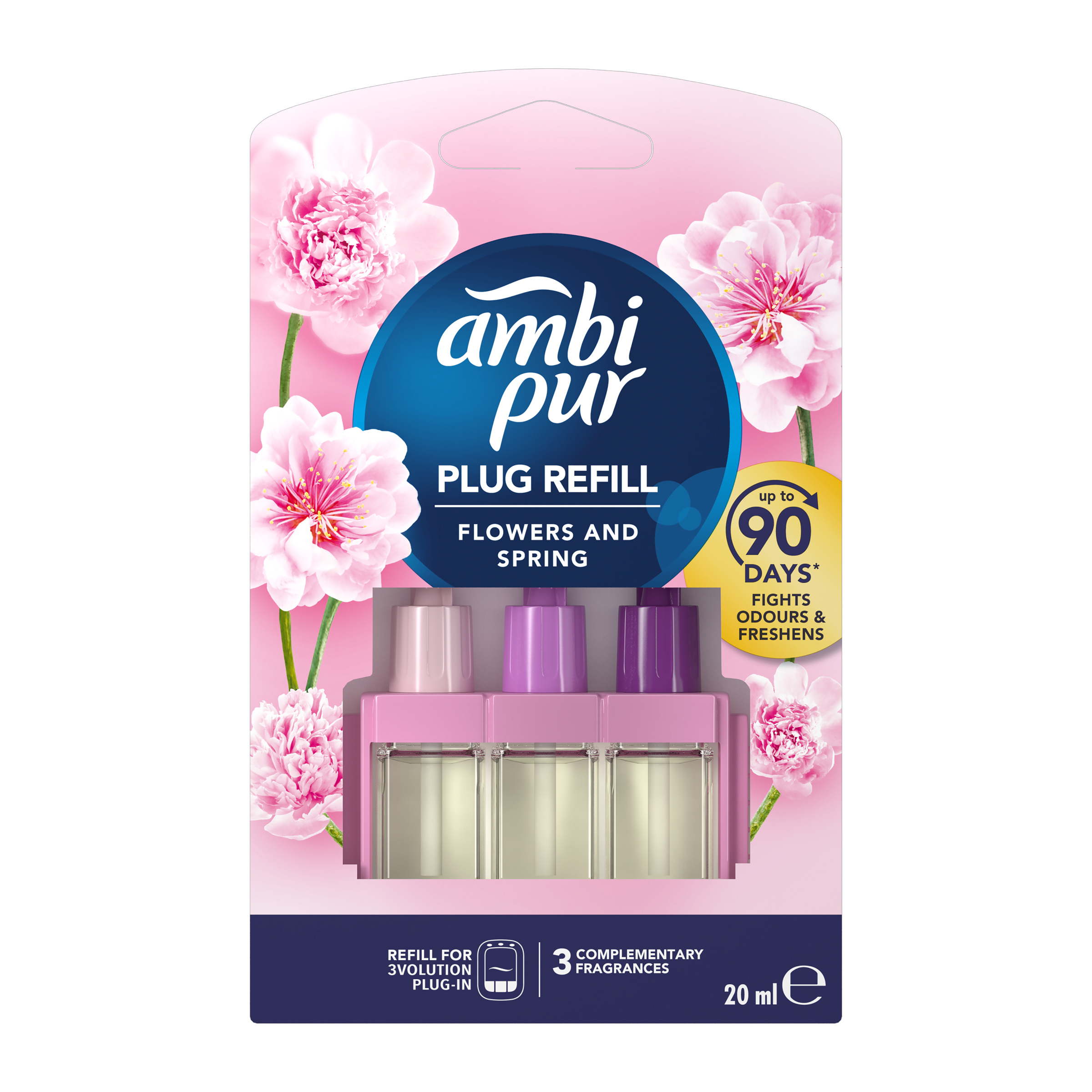 Náhradní náplň do elektrického osvěžovače vzduchu Ambi Pur s technologií OdourClear nepřetržitě odstraňuje nepříjemné vytrvalé pachy a zanechává lehkou svěží vůni až 80 dnů (pokud se používá 12 hodin denně při nastavení na úroveň 2). Vůně Flowers & Spring naplní váš domov jiskřivou osvěžující vůní, která evokuje první jarní sluneční paprsky dopadající na něžná poupata květin. Vytvořte si prostředí podle svých představ s elektrickým osvěžovačem vzduchu Ambi Pur a širokou škálou kvalitních vůní, které skutečně eliminují zápach, abyste si mohli vy i vaši hosté užívat příjemnou svěžest. Používejte náhradní náplně Ambi Pur pouze s difuzérem Ambi Pur, který se prodává samostatně, abyste naplnili váš domov svěžestí a vůní, kterou budete vnímat den co den, týden co týden. Pro okamžitou svěžest vyzkoušejte kompletní řadu nových výrobků Ambi Pur s jedinečnou technologií OdourClear, například osvěžovač textilií, osvěžovač vzduchu či osvěžovač do auta Ambi Pur Car.