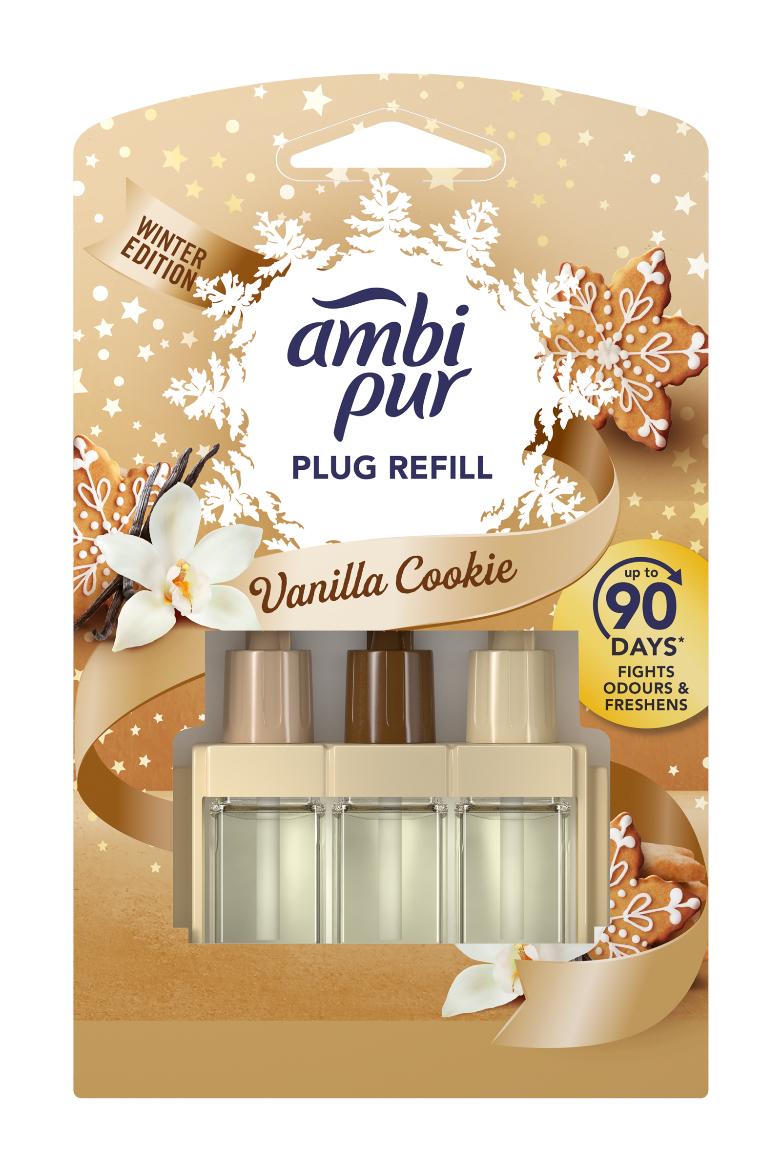 Ambi Pur 3Volution Vanilla Cookie nepřetržitě bojuje s pachy a střídá 3 vzájemně se doplňující vůně pro svěžest, kterou budete vnímat neustále. Vydrží až 90 dnů (při používání 12 hodin denně s nastavením nejnižší úrovně odpařování). Objevte krásu Vanilla Cookie s intenzivnější vůní s větším dosahem, který provoní celý váš pokoj. Uklidňující vanilka a smetanové dřevo s tóny bílých květin a pudru. Vnímejte klid, který vás obklopí, když se vzduch naplní touto čistou a decentní vůní. U běžných elektrických osvěžovačů si na vůně rychle zvykneme a přestaneme je vnímat. Ambi Pur Osvěžovač vzduchu 3Volution svěžest obnovuje tím, že se každých 45 minut automaticky střídají 3∘vzájemně se doplňující, vysoce kvalitní vůně. Náplně Ambi Pur 3Volution používejte s odpařovacím strojkem 3Volution, abyste naplnili váš domov svěžestí a vůní, kterou budete vnímat den co den, týden co týden. 3Volution také umožňuje nastavit intenzitu odpařování vůně, a tak vám pomůže vytvořit požadovanou atmosféru.