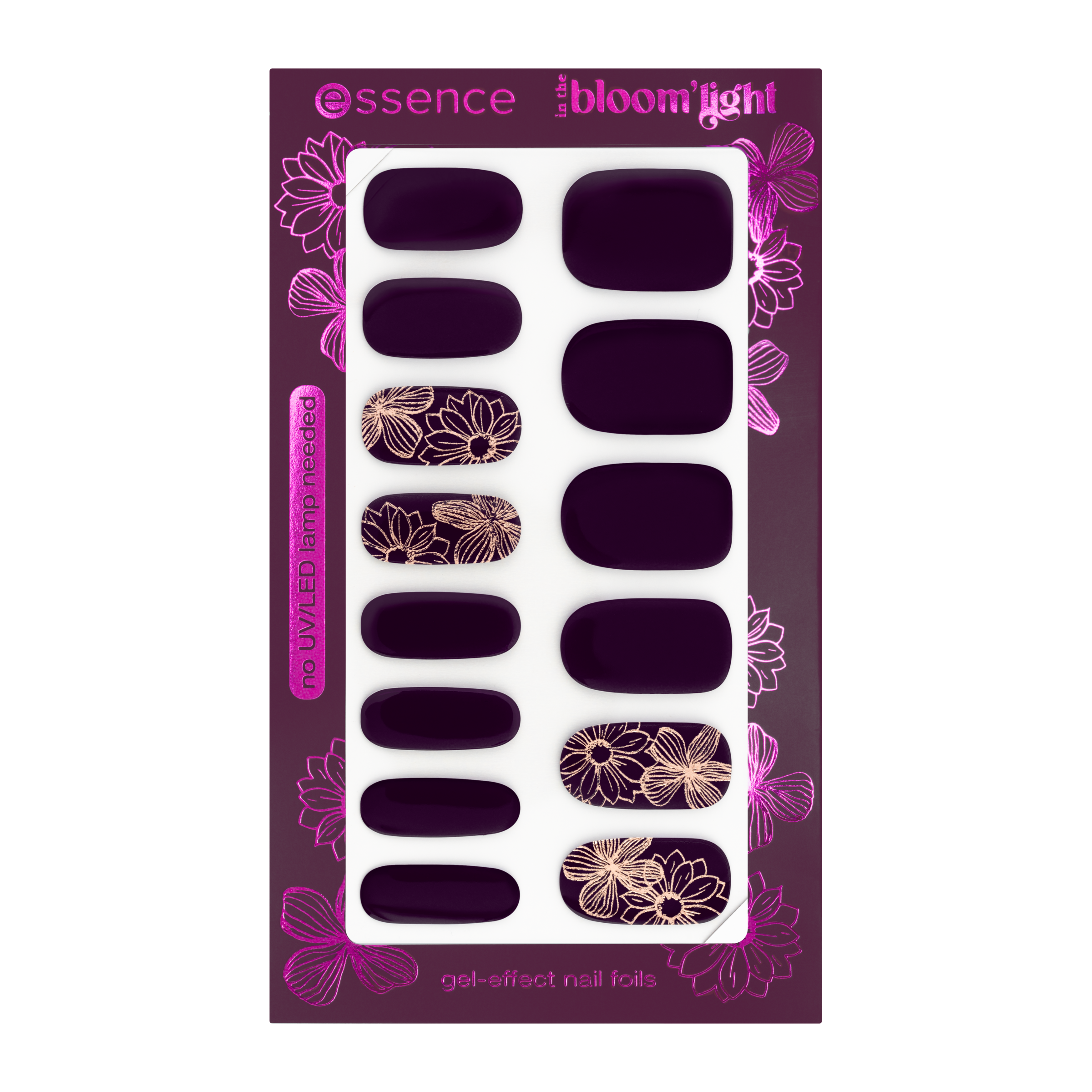 Fialové květiny zářící v přirozeném světle – toto je inspirace pro vaši make-up rutinu. Přijměte tento nápad a použijte essence in the bloom'light fólie na nehty 01 Moonflowers Are My Favorite. Celé balení obsahuje 14 fólií v 7 velikostech, stejně jako různé barvy a květinové vzory. Vyberte si mezi jednobarevnými fóliemi, dvoubarevnými grafickými motivy nebo realistickými květinovými vzory. Jednoduše sloupněte nehtovou fólii z archu a přilepte ji přímo na nehty. Užijte si úžasný gelový efekt i bez použití UV lampy. Tyto fólie na nehty připomínají profesionální akrylové nehty a jsou dokonalým doplňkem pro váš květinový make-up.