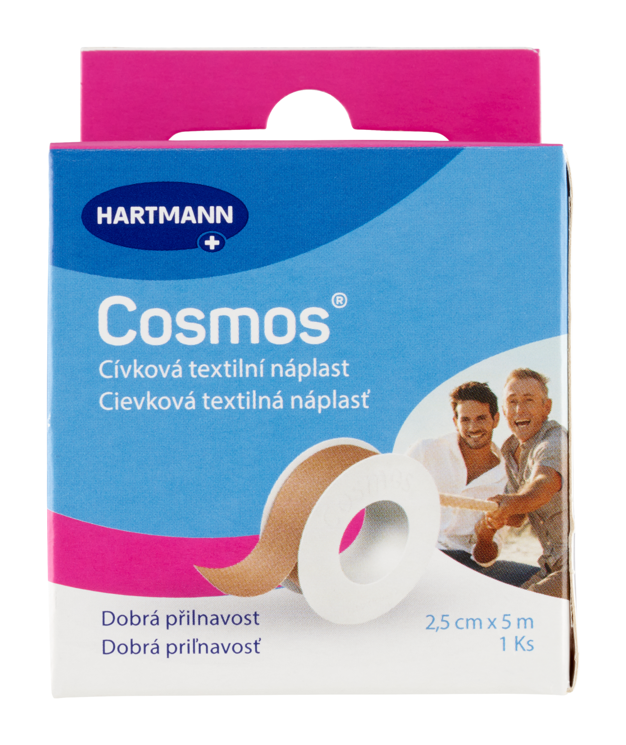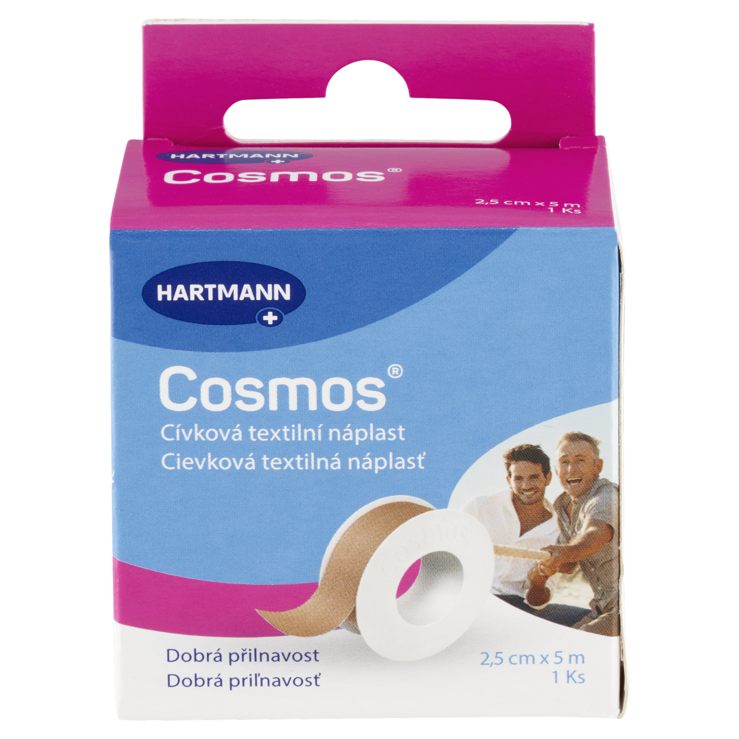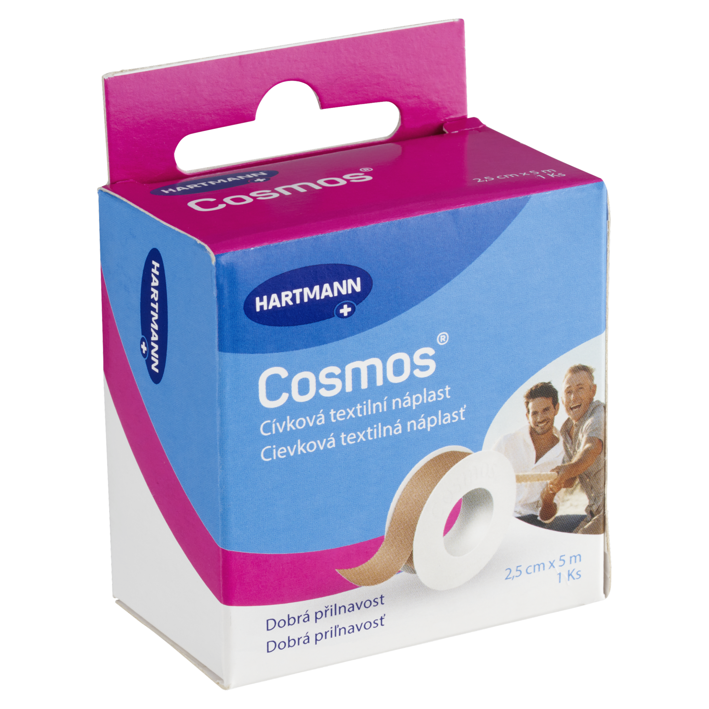 Ke kůži šetrná, prodyšná fixační náplast z textilní tkaniny se silnou lepící schopností pro snadnou a spolehlivou fixaci krytí a obinadel.