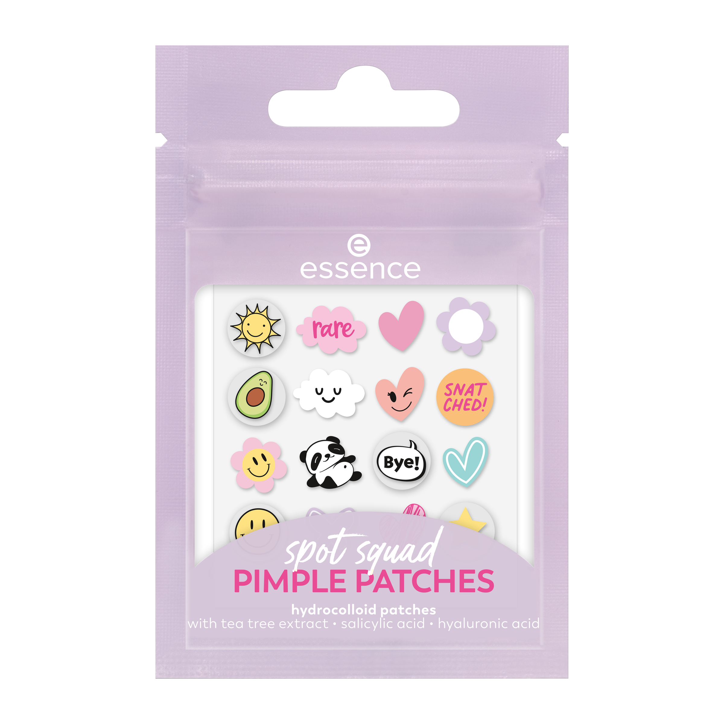 S náplastmi essence Spot Squad se pupínků zbavíte raz dva! Přírodní složení s výtažkem z čajovníku, kyselinou salicylovou a hyaluronem urychluje hojení a zklidňuje podrážděnou pokožku. Praktické balení s jednotlivými náplastmi umožňuje snadné použití kdykoliv a kdekoliv. Díky zábavnému designu a opakovaně uzavíratelnému obalu jsou nejen praktické, ale také roztomilé a rozjasní tak váš den.