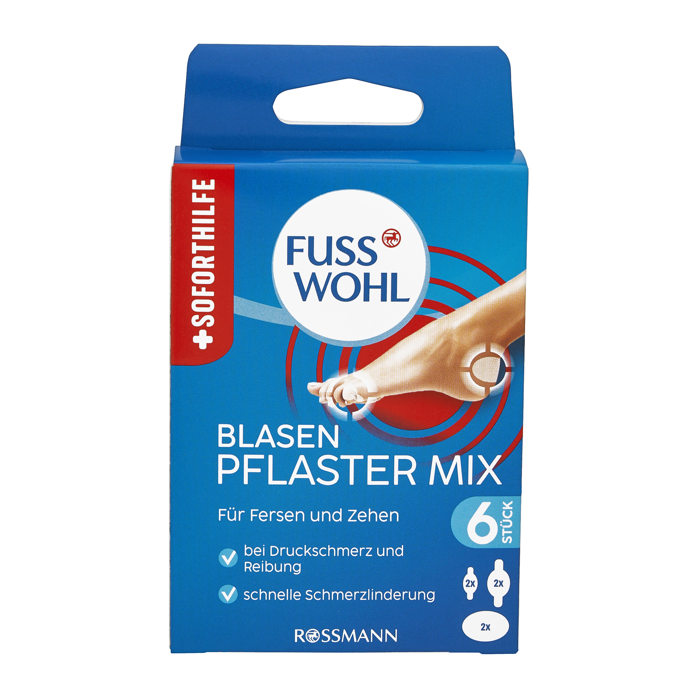 Náplasti na puchýře FUSSWOHL nabízejí optimální pohodlí a rychlou úlevu od bolesti díky tlumícímu hydrokoloidnímu obvazu na rány.
