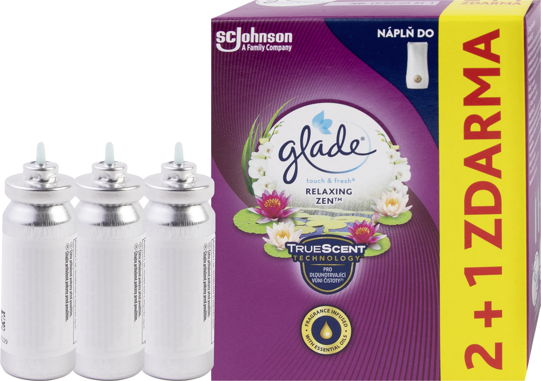 Náplň Glade by Brise One Touch 2+1 Japonská zahrada do sprejového osvěžovače vzduchu. Vytváří jemnou mlhu z vůně, která odstraní nepříjemné pachy a na dlouhou dobu provoní každou toaletu či koupelnu.