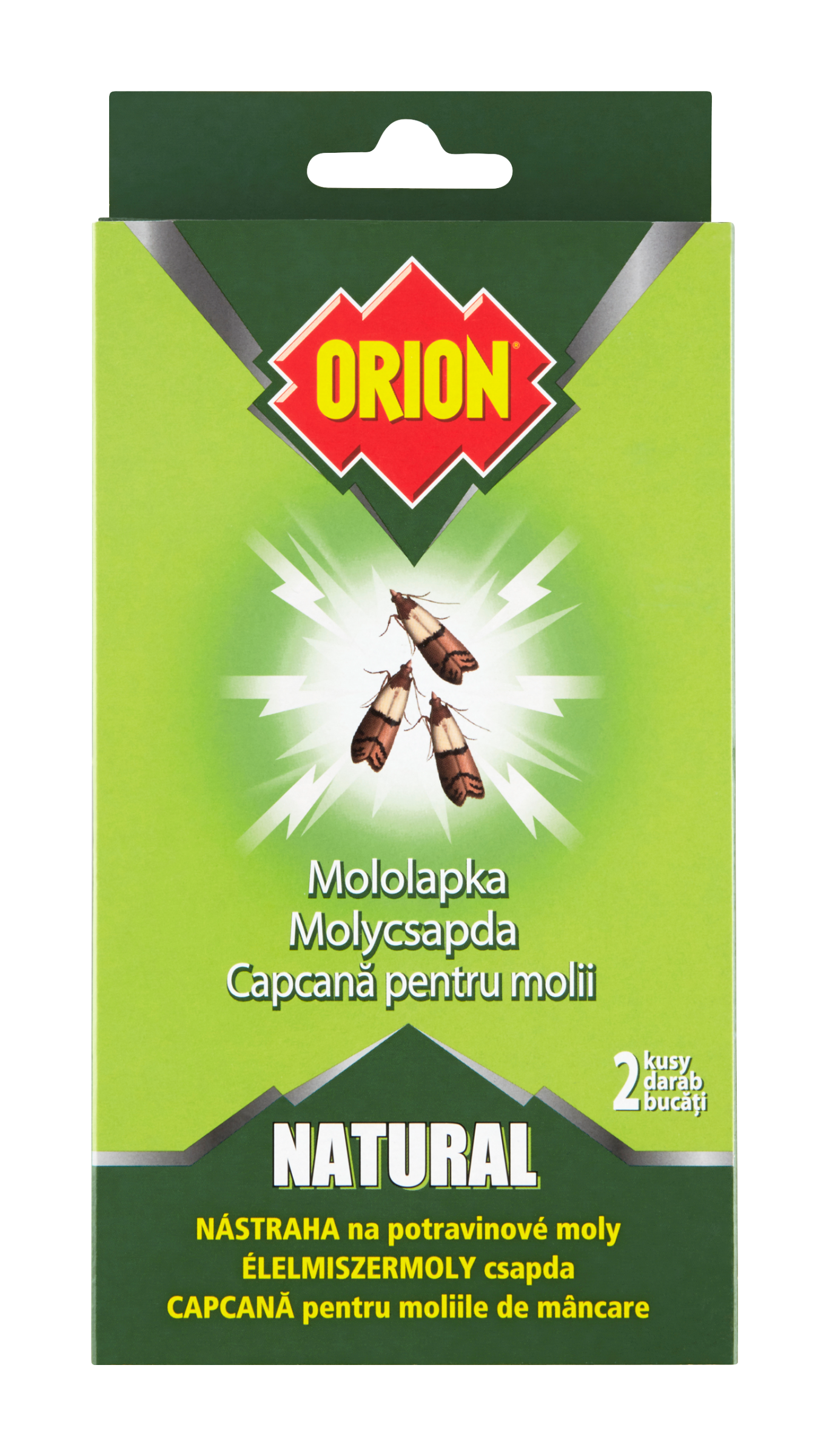 Orion nástrahy na potravinové moly slouží k monitoringu jejich výskytu a následně k jejich likvidaci. Obsahují feromon, který vábí samečky molů, kteří se přilepí na lepivou část. Čím se Orion nástrahy na potravinové moly liší od ostatních nástrah? Moli jsou uvězněni uvnitř nástrahy, takže je přilepené ani nevidíte, ani se jich nedotýkáte při manipulaci s potravinami.