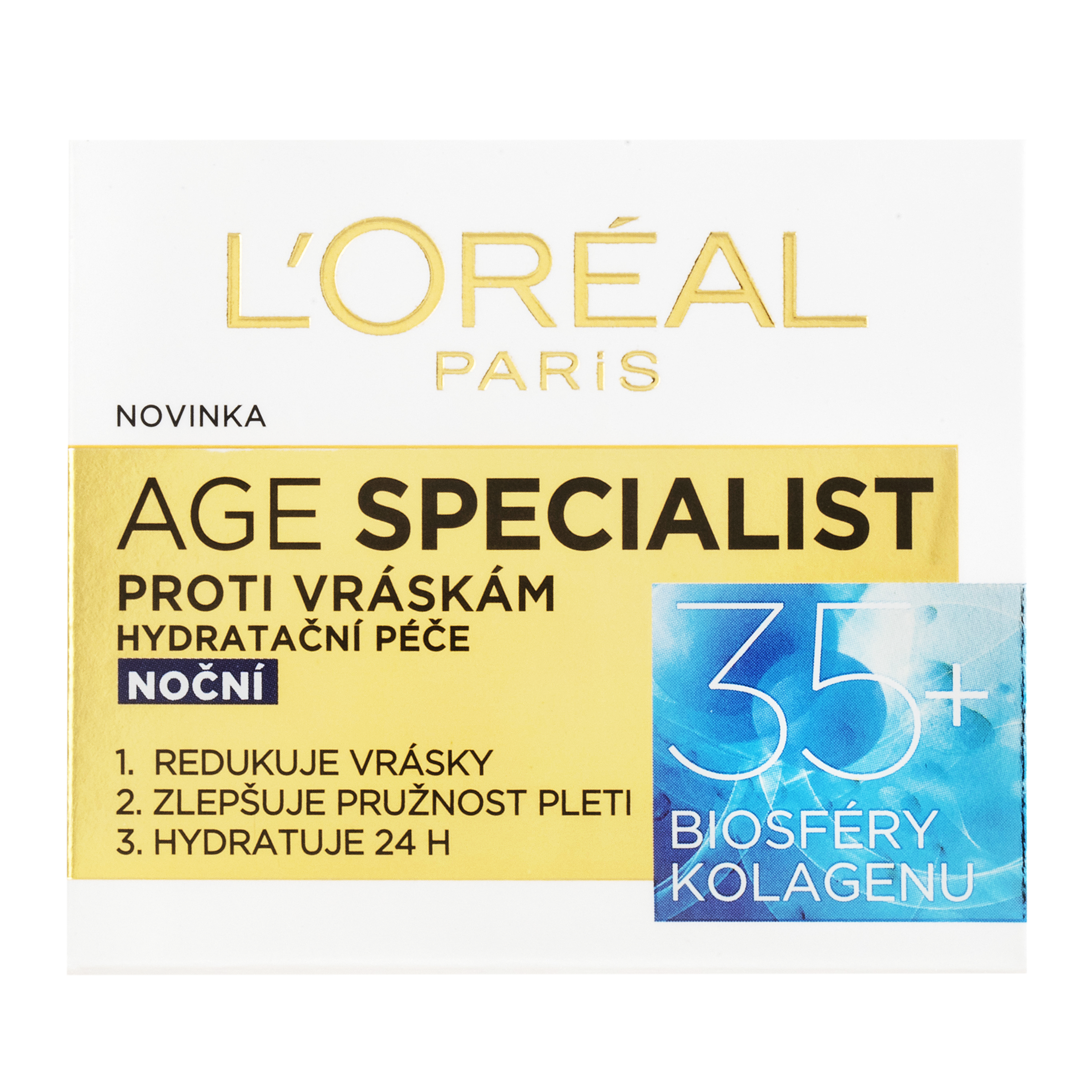 V Každém věku má pleť jiné potřeby. Krémy Age Specialist jsou šité na míru danému věku. Po 35. roku života může nedostatek kolagenu způsobit ztrátu elasticity pokožky, objevují se první vrásky. Krém Age Specialist pomáhá bojovat proti projevům stárnutí pleti, zlepšuje její pružnost a hydratuje pokožku až po 24h. Noční krém Age Specialist 35+ je vhodný pro ženy nad 35 let.
