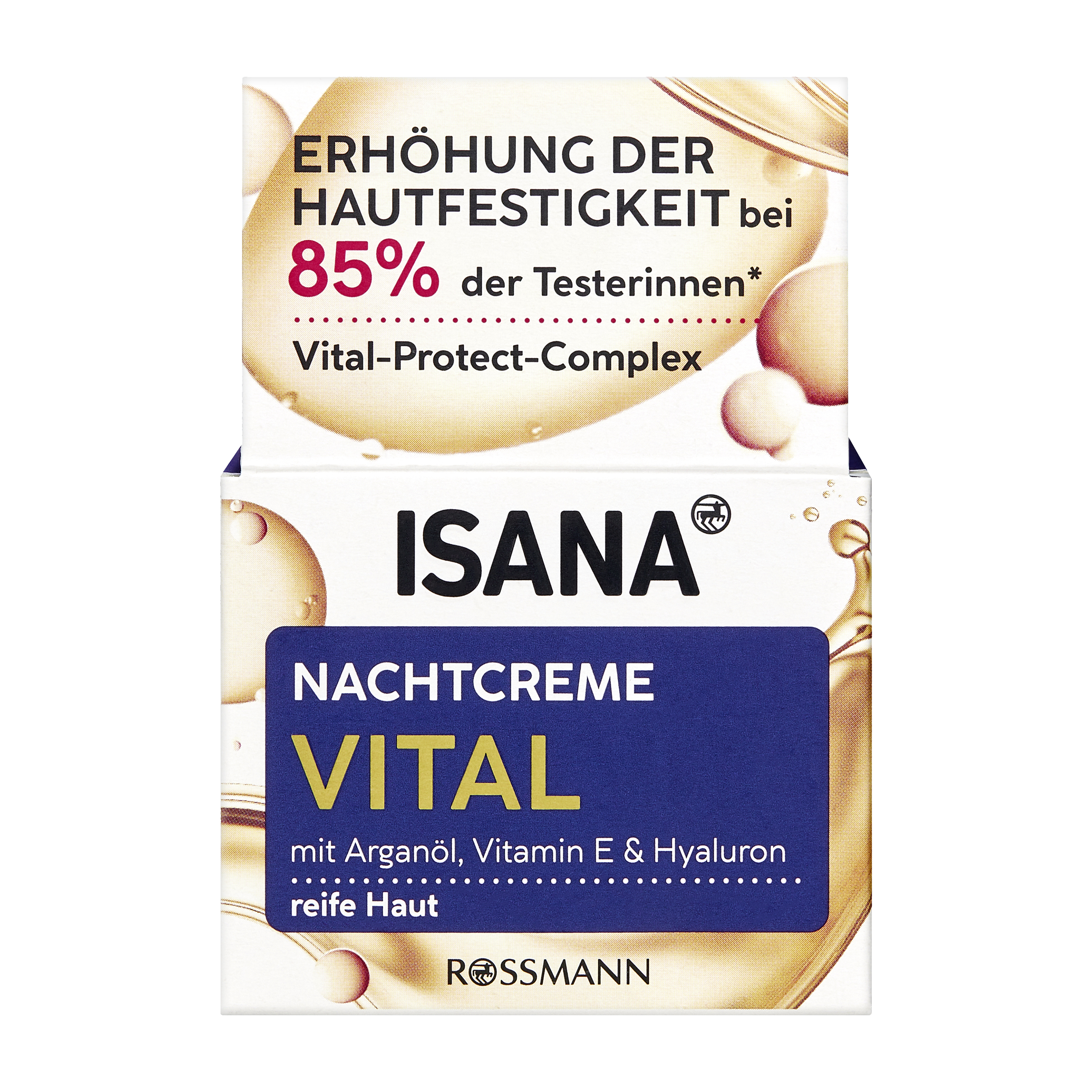 Noční krém ISANA Vital s komplexem Vital Protect vyrobený z cenných lipidů, hydratačních látek a aktivní složky ze semen vigny (moth bean) je zpevňující péče, která revitalizuje a vyživuje pokožku.
