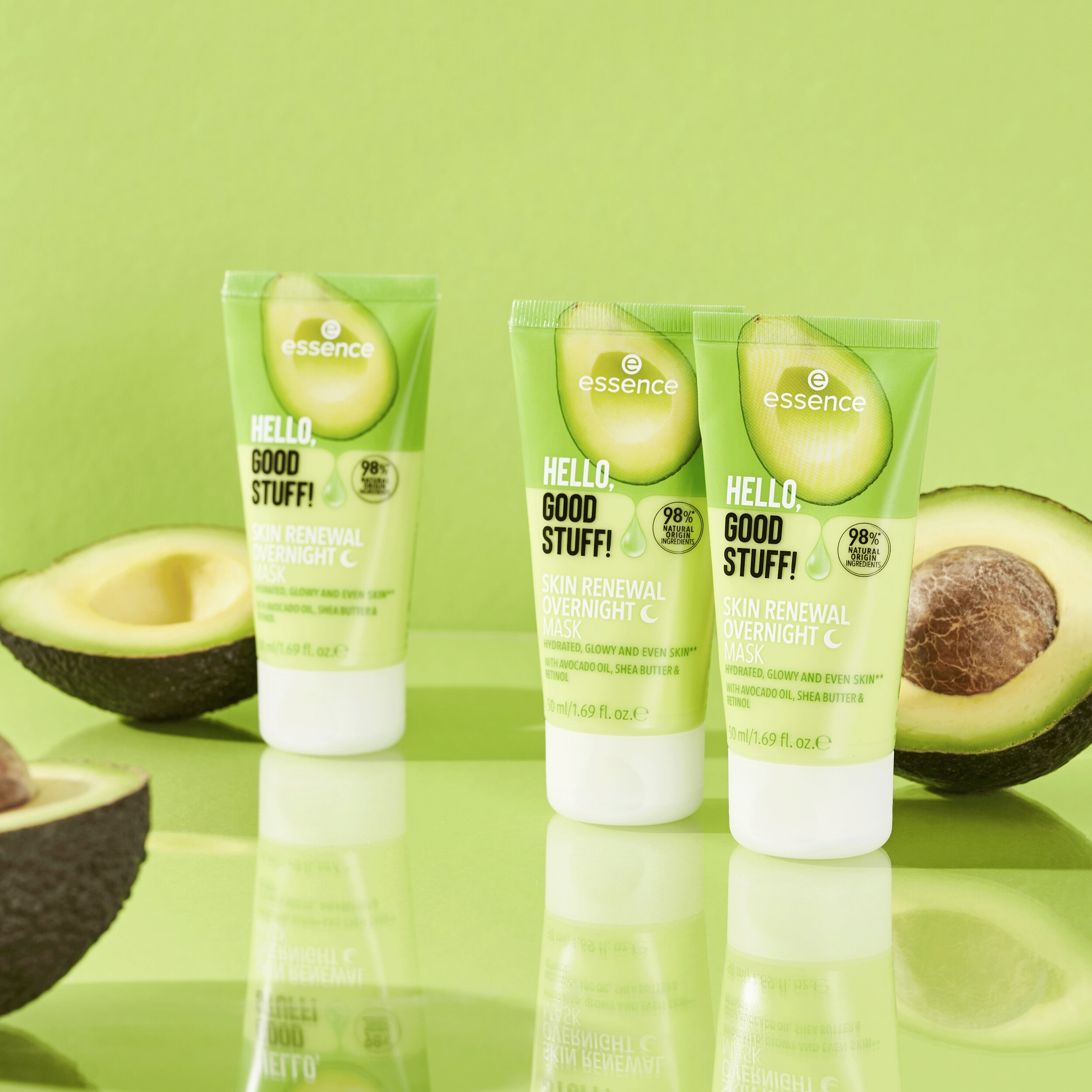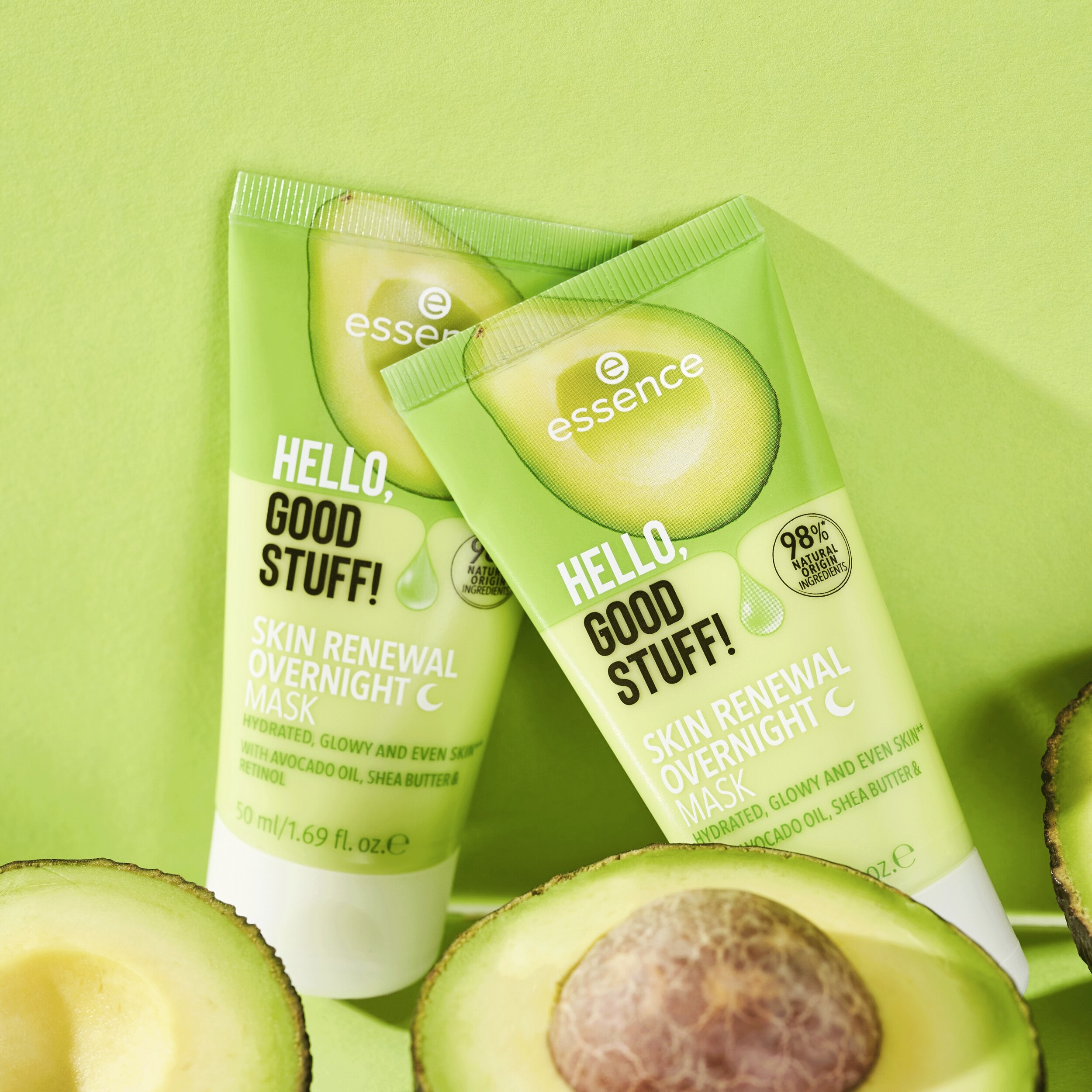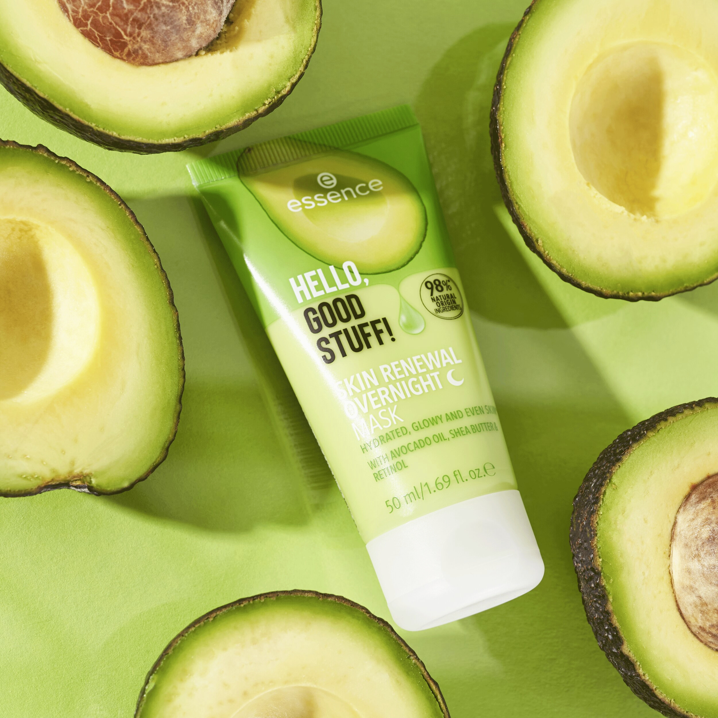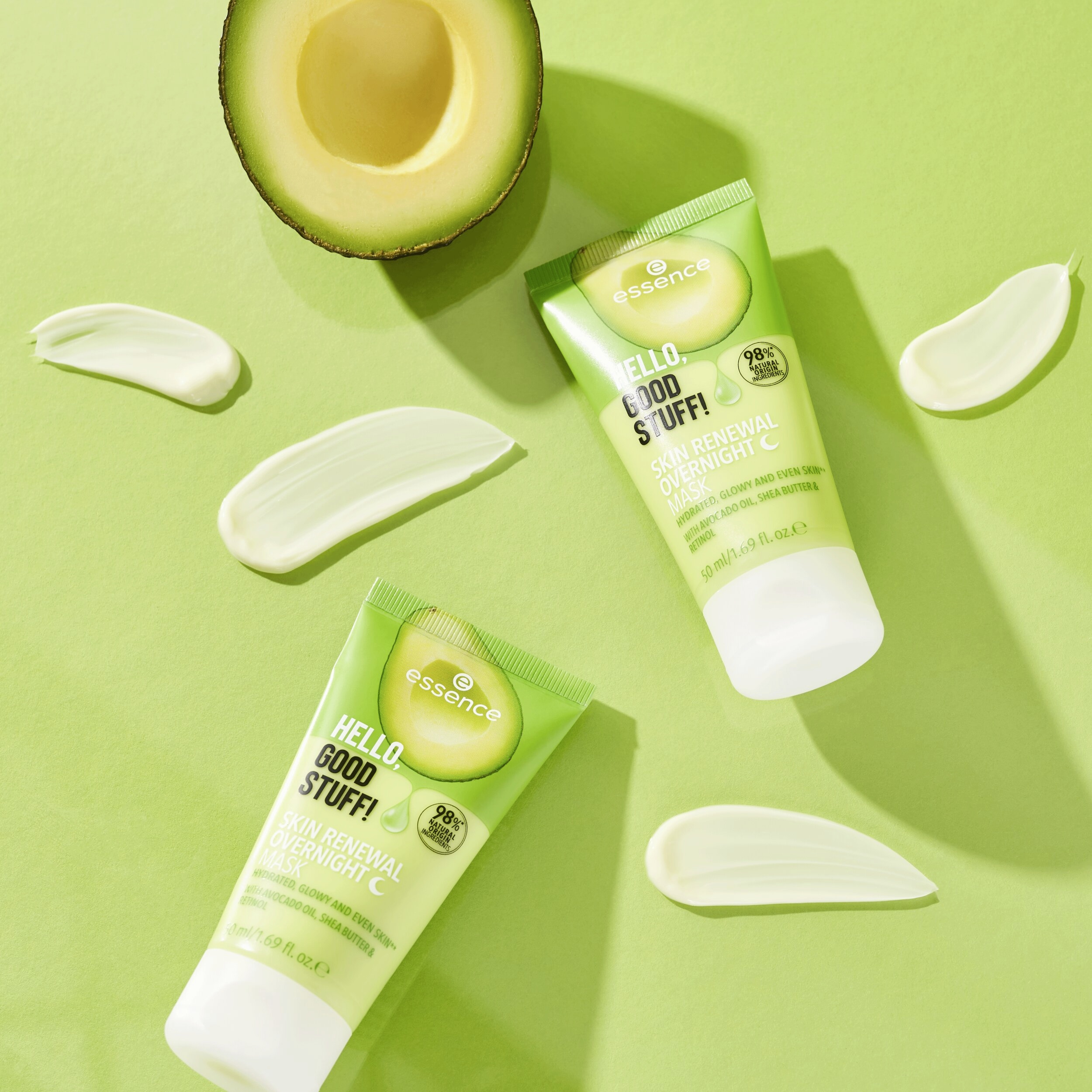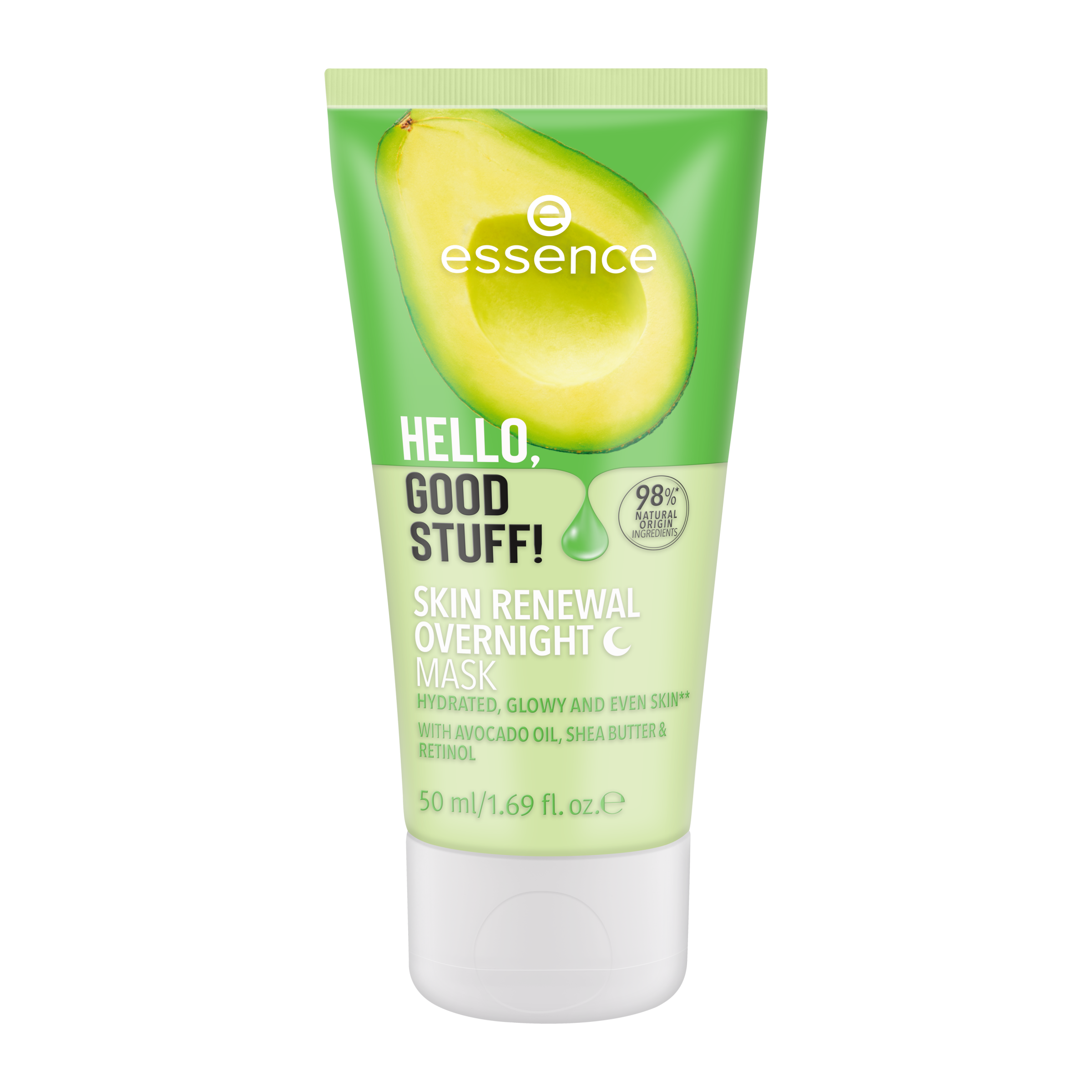 Abyste se vyspali do krásy: HELLO, GOOD STUFF! MASKA NA NOC SKIN RENEWAL s avokádovým olejem, bambuckým máslem a retinolem pečuje o pleť, zatímco spíte. Díky lehkému složení je vaše pleť hladší, hydratovaná a neskutečně svěží! Aplikujte tuto dermatologicky testovanou masku dvakrát týdně a nechte ji přes noc absorbovat. Výsledek – následující ráno je pleť jemná, zářivá a sjednocená!