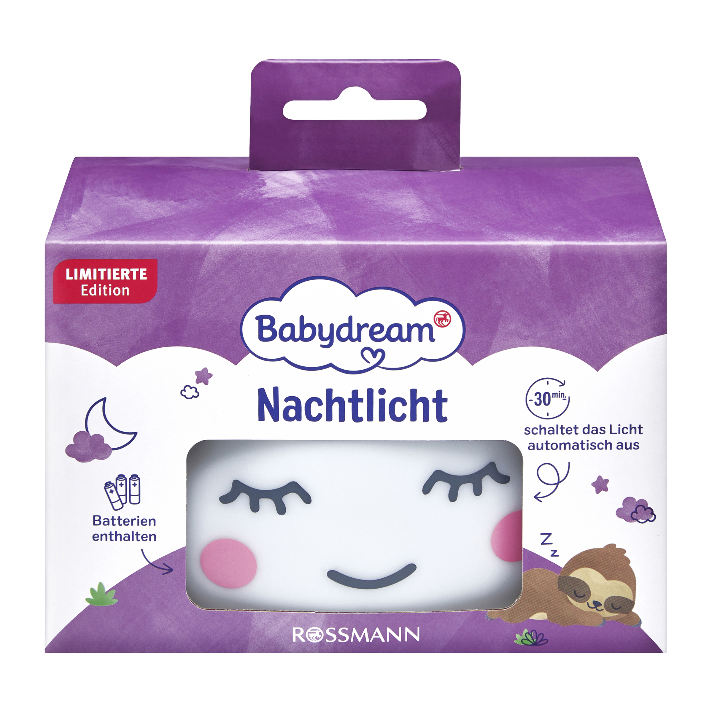 Noční světlo Babydream má teplou teplotu barev, a tak umožňuje vašemu dítěti snadněji usnout. Dokáže ho zbavit strachu ze tmy a dodává mu pocit bezpečí. Po 30 minutách se automaticky vypne. Robustní kryt je vyroben z vysoce kvalitního plastu a je vybaven LED světlem s dlouhou životností. Noční světlo má zajištěný prostor pro baterie. Tři baterie AAA od společnosti Rubin jsou již součástí balení.