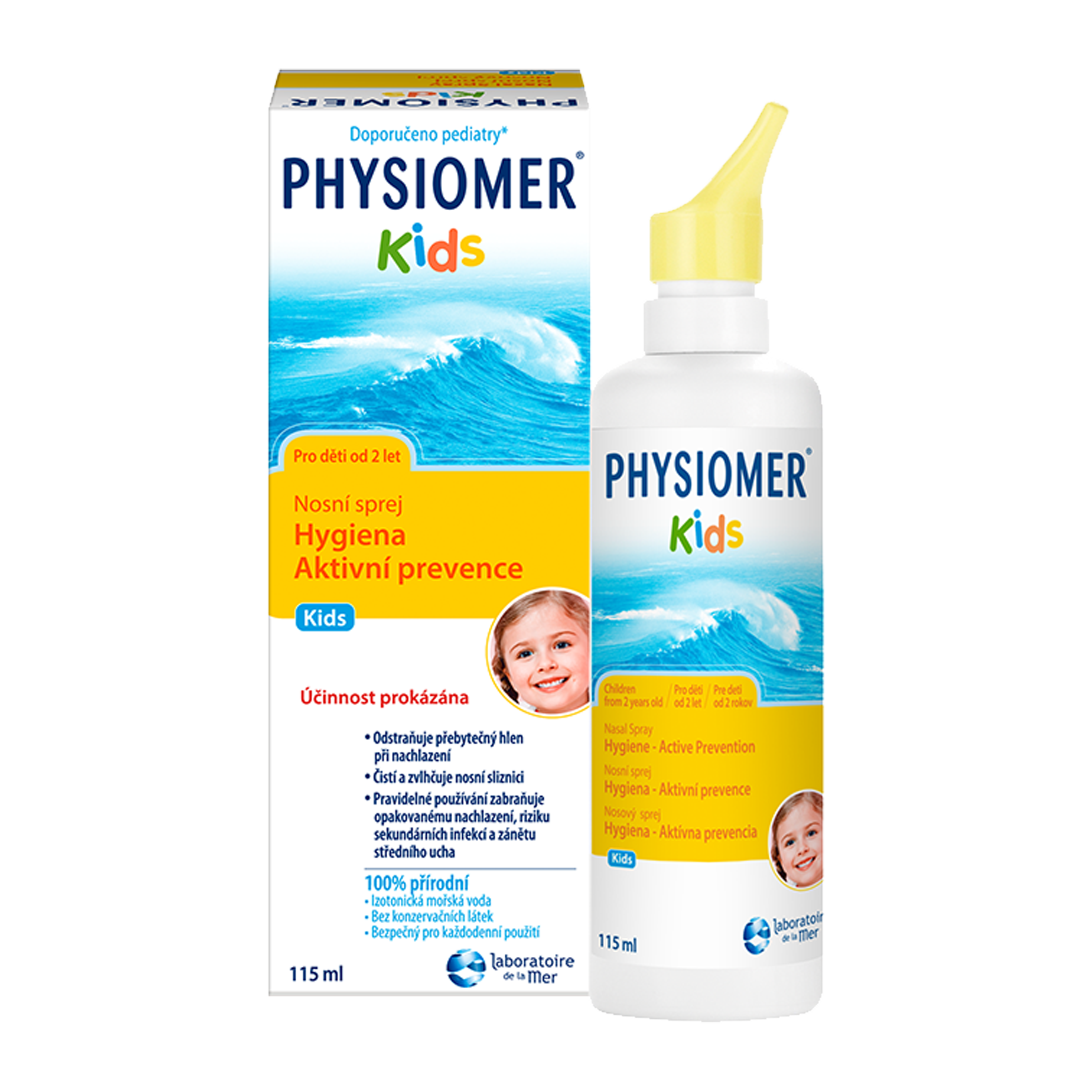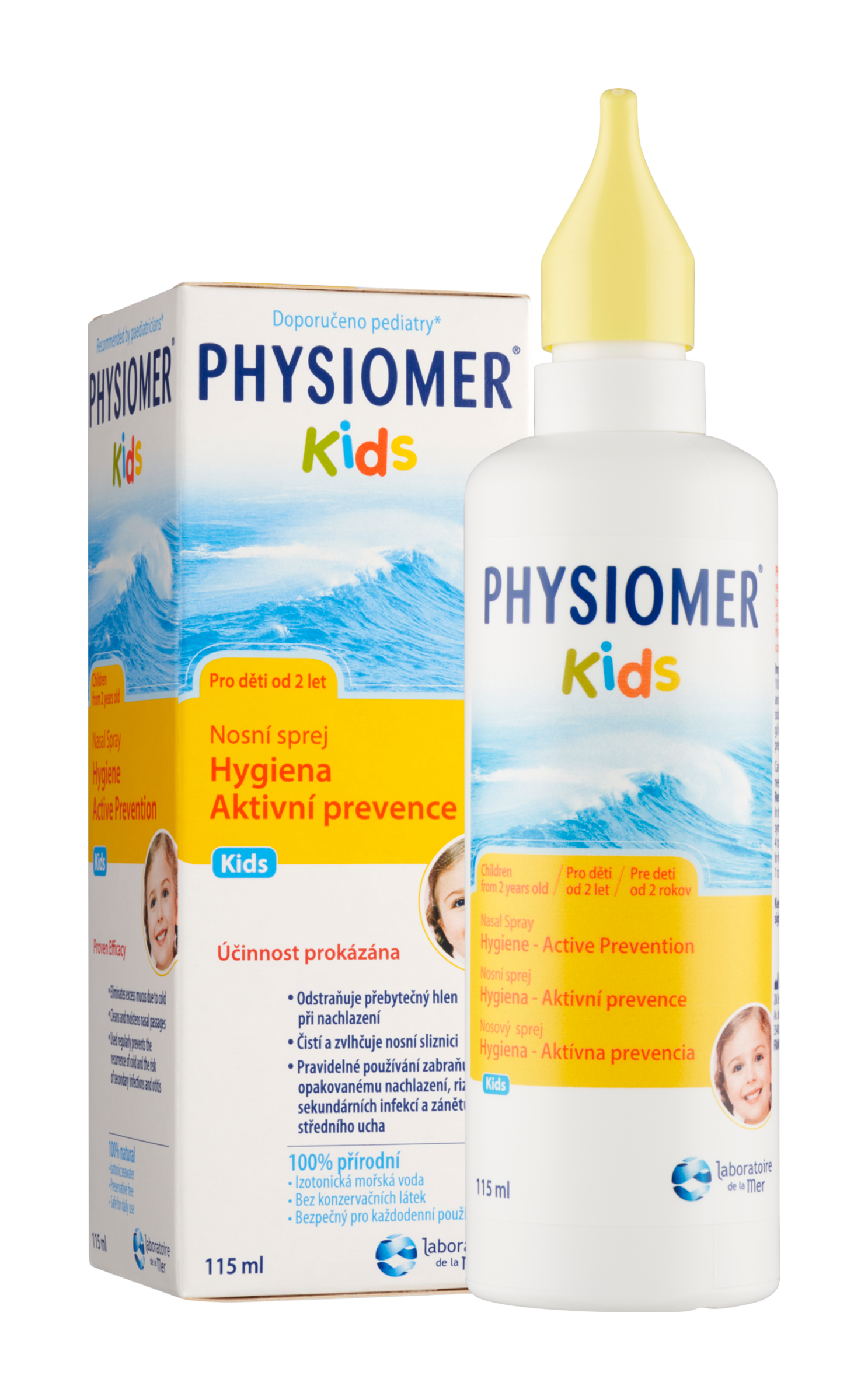 Physiomer® Kids obnovuje dýchání vašeho dítěte způsobené ucpaným nosem a chrání před vznikem zánětu středního ucha. Při pravidelné aplikaci chrání před opakovanými infekcemi horních cest dýchacích. Doporučeno pediatry* *Obecné doporučení pro nosní výplach.