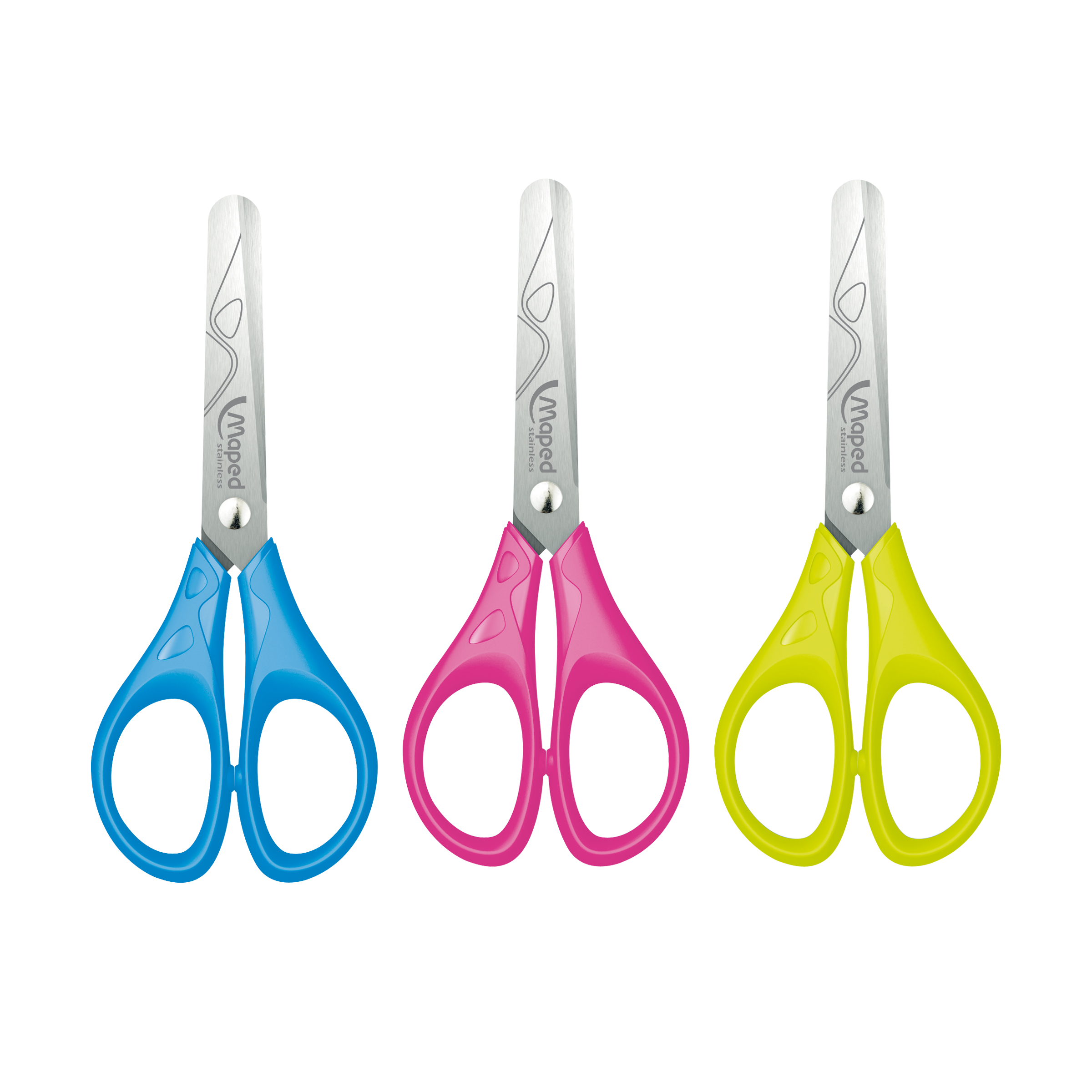 Nůžky Maped Essentials Pulse o délce 13 cm mají symetrické rukojeti, čepele z broušené nerezové oceli a zaoblené špičky.