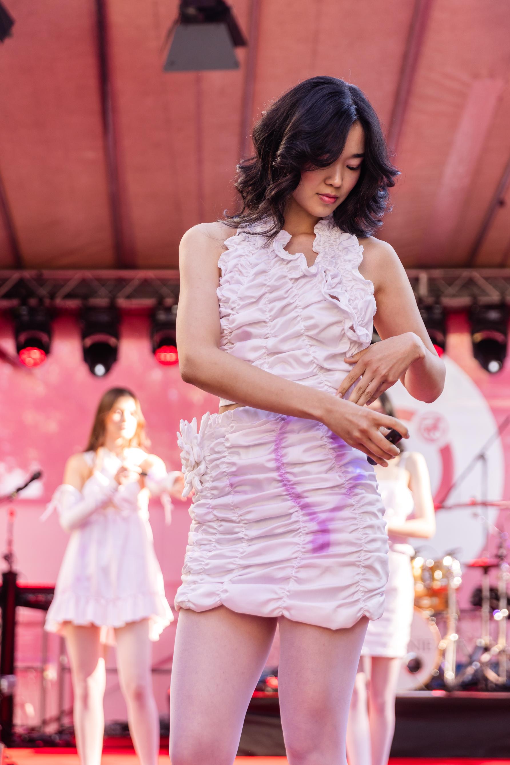Látka, kterou v tuto chvíli v Česku pro výrobu oblečení nikdo jiný nevyužívá, zároveň svým nositelkám kromě úžasného vizuálního efektu přináší důležitou informaci o intenzitě UV záření. Tímto způsobem může varovat před nadměrným vystavením slunečnímu záření a upozornit také na potřebu chránit svou kůži před slunečními paprsky.