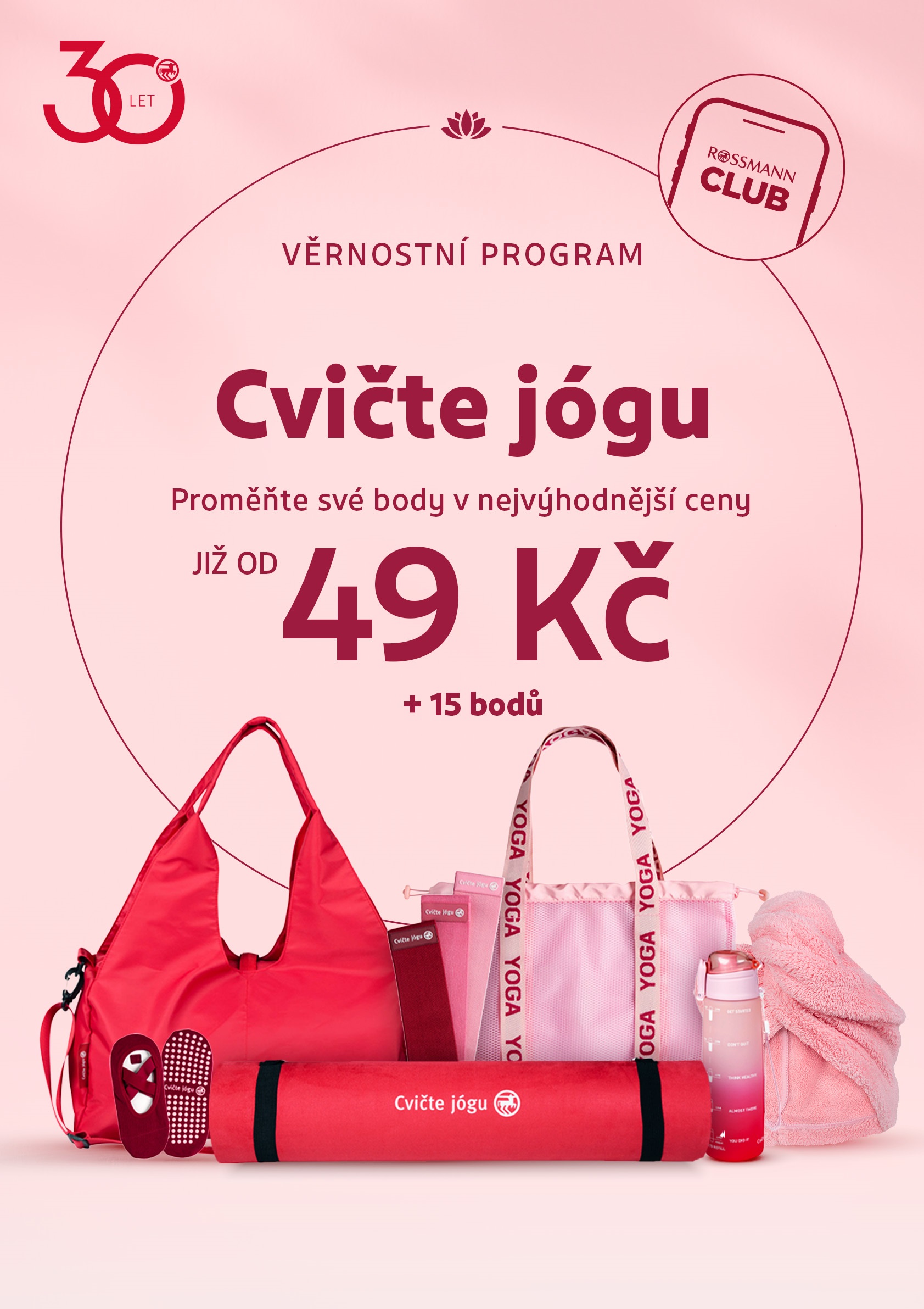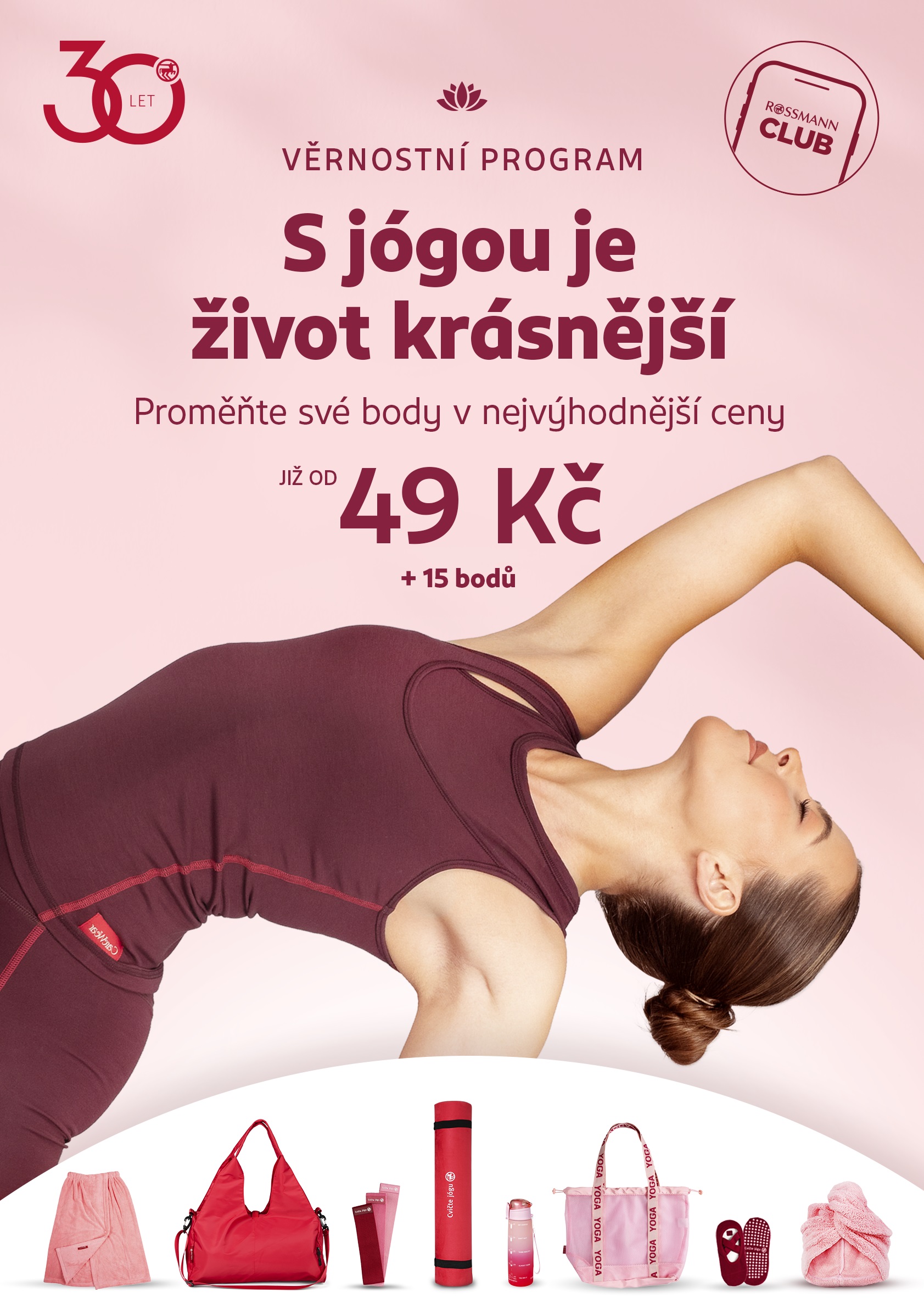 Stačí být členem ROSSMANN CLUBu, sbírat v mobilní aplikaci body za nákupy v prodejnách i na e-shopu a pak už si jen vybrat z lákavé nabídky výše zmíněných produktů. Akce je určena pouze pro zákazníky starších 18 let a bude probíhat do vyprodání zásob. Pomůcky na jógu je možné získat již od 15 věrnostních bodů s doplatkem 49 Kč.
