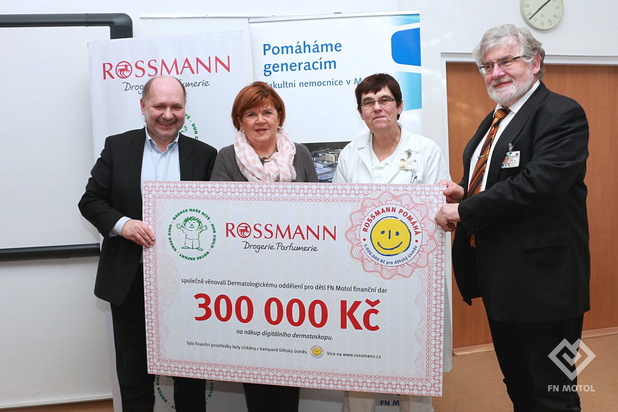 Sedmý ročník charitativního projektu 5.000.000 Kč pro dětský úsměv se uskutečnil v září loňského roku ve všech prodejnách drogerie parfumerie ROSSMANN. Díky tomuto projektu Dermatologické oddělení pro děti FN Motol obdrželo 300 000 korun na nákup digitálního dermatoskopu Dermogenius Ultra, který lékařům pomůže zkvalitnit péči o děti s mateřskými znaménky, neboť jim umožní včasné zachycení vyvíjejících se zhoubných nádorů.