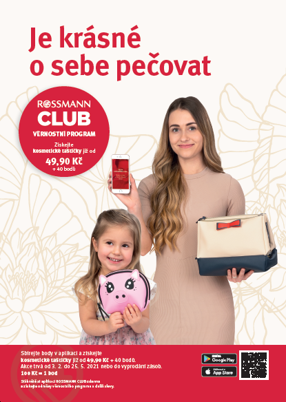 Body může každý zákazník sbírat prostřednictvím mobilní aplikace v rámci oblíbeného věrnostního programu ROSSMANN CLUB. Za každých 100 korun nákupu obdrží zákazník jeden bod. Zákazník získá za 40 nasbíraných virtuálních bodů možnost zakoupit jednu z odměn dle vlastního výběru se slevou, a to za 49,90 Kč, a za 20 nasbíraných virtuálních bodů získá možnost zakoupit jednu z odměn dle vlastního výběru se slevou, a to za 149,90 Kč. Přehled produktů naleznete v letácích a na webových stránkách drogerie ROSSMANN. Akce trvá od 3. února do 25. května 2021. Přijďte nakoupit do prodejen ROSSMANN a odneste si dárek v podobě praktické a elegantní kosmetické taštičky.