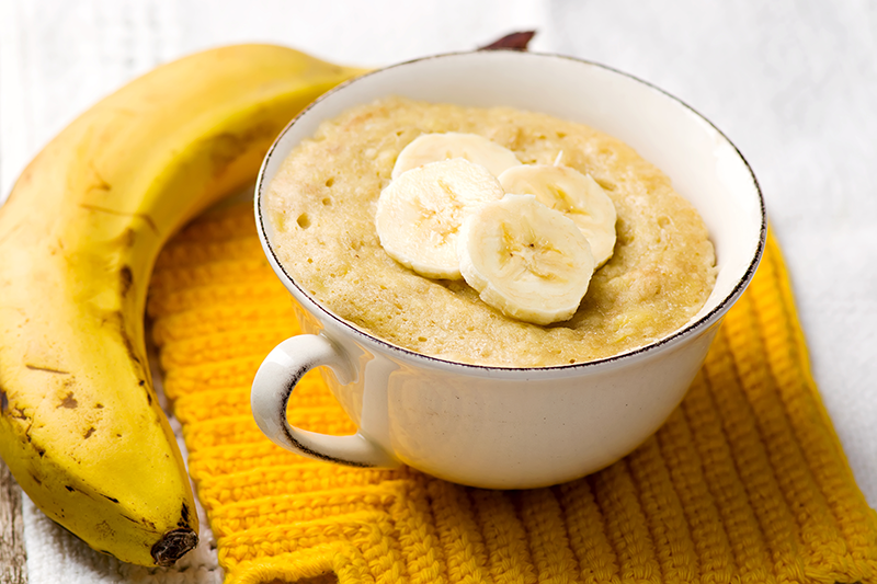 - Sladká snídaně zvaná mug cake – pokud vás unavuje tradiční ovesná kaše, zkuste tento dietní zázrak. Základem jsou 3 suroviny: ovesné vločky, banán a vejce (ale bez něj se obejdete). Rozmačkejte banán, vše smíchejte a nalijte do hrnečku. Pak už stačí dát hrneček na 3 minuty do mikrovlnky nebo na 12 – 15 minut do trouby na 250 oC. Pro oživení chutí lze přidat čokoládu či jiné suroviny.