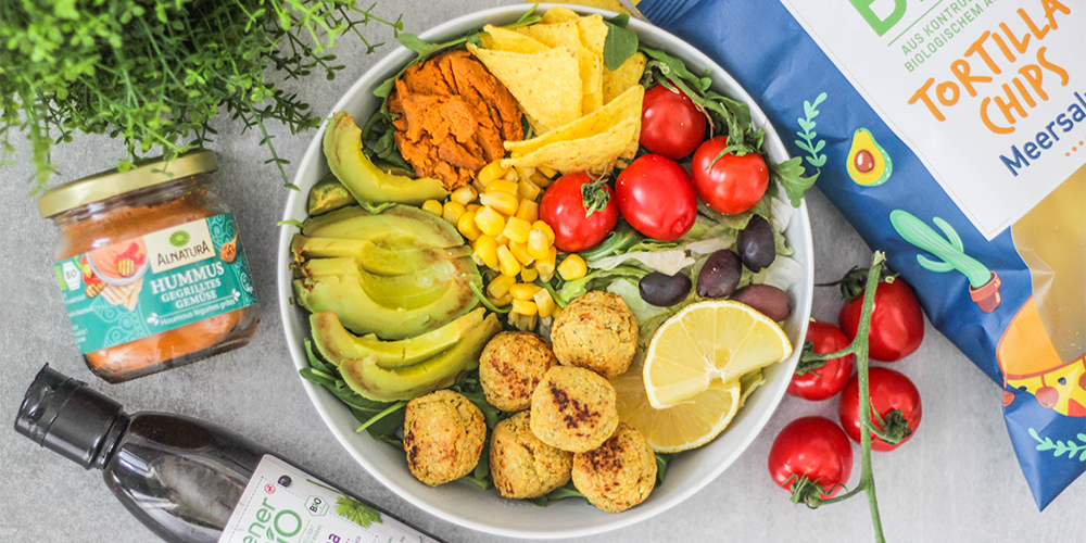 Vyzkoušejte náš barevný vegetariánský salát s cizrnovými kuličkami, jenž vás chuťově uspokojí, a především na dlouhou dobu zasytí. Pusťte se do jeho míchání s Viki a s bio surovinami z enerBiO a ALNATURY teď hned!