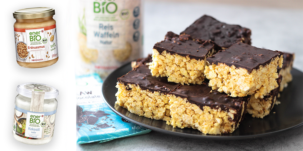 - Rýžové chlebíčky rozdrťte (nejlépe rukama, aby zůstaly kousky). K této drcené směsi přidejte arašídové máslo a agáve sirup. Vzniklou směs dejte do formy a utlačte na dno.
