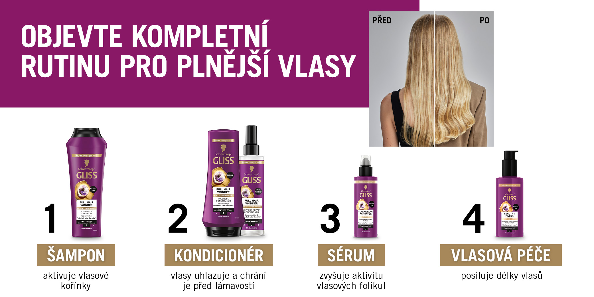 Vlasová péče s kofeinem a peptidy - Schwarzkopf Gliss Full Hair Wonder pro plnější vlasy!
