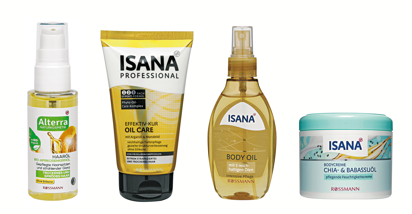 Aplikací tělového oleje dodáte pokožce potřebnou výživu a hydrataci. ISANA suchý tělový olej je bohatý na arganový, mandlový, avokádový, slunečnicový a makadamiový olej a pokožce dodá intenzivní péči a zanechá na ní zářivý lesk. Prodává ROSSMANN 69,90 Kč.