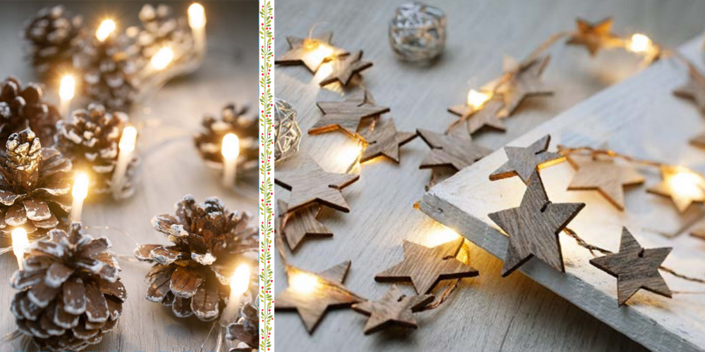 Vánoce v přírodním stylu se poslední roky stávají stále více a více oblíbené. Podpořte naturální styl jednoduchými ozdobami v podobě svítících šišek. Krásně budou vypadat také dřevěné hvězdičky.