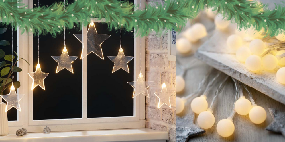 Čím víc světel, tím lépe! Nezapomeňte nazdobit také všechna okna, krásně v nich vypadají světelné řetězy s hvězdičkami, klasické kuličky poslouží také.