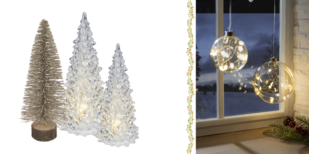Nezapomínáme ani na světelné dekorace, kterou dokáží váš interiér krásně pozvednout. Naším favoritem jsou mini umělé stromečky a LED světelná koule!